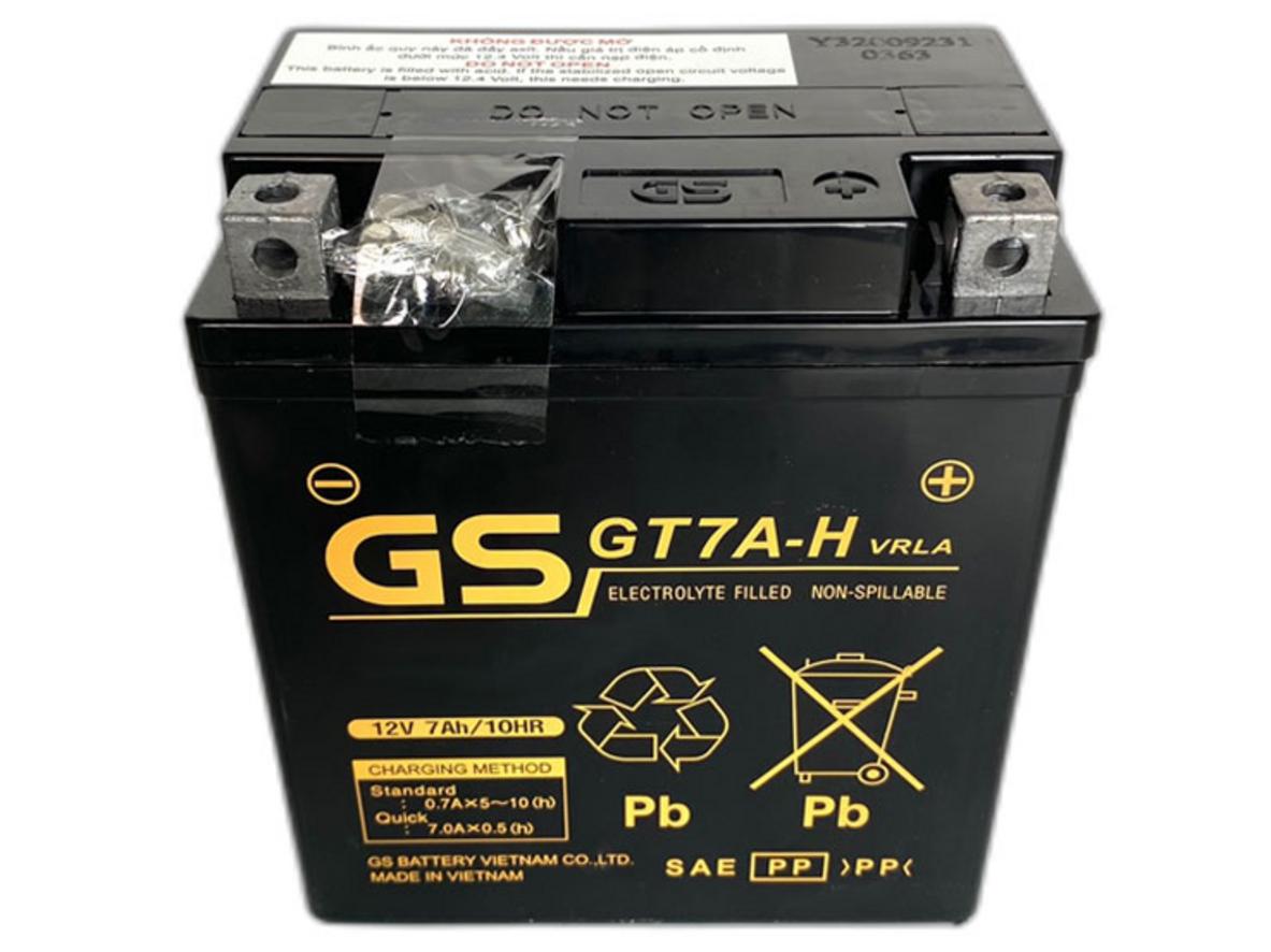 Ắc quy GS GT7A-H (12V – 7Ah) là lựa chọn an tâm cho xe tay ga: khởi động khỏe và miễn bảo dưỡng. Bạn không cần châm nước, chỉ lắp là chạy ngay.
