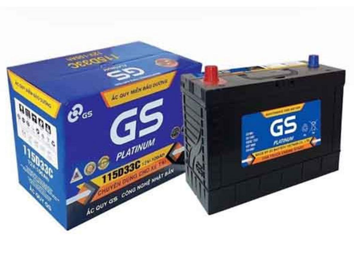 Ắc quy GS MF115D33C 12V – 100Ah là loại ắc quy miễn bảo dưỡng (ắc quy khô) được sản xuất bởi GS Battery Việt Nam theo công nghệ Nhật Bản, phù hợp sử dụng cho nhiều dòng xe ô tô và xe tải hạng nhẹ.