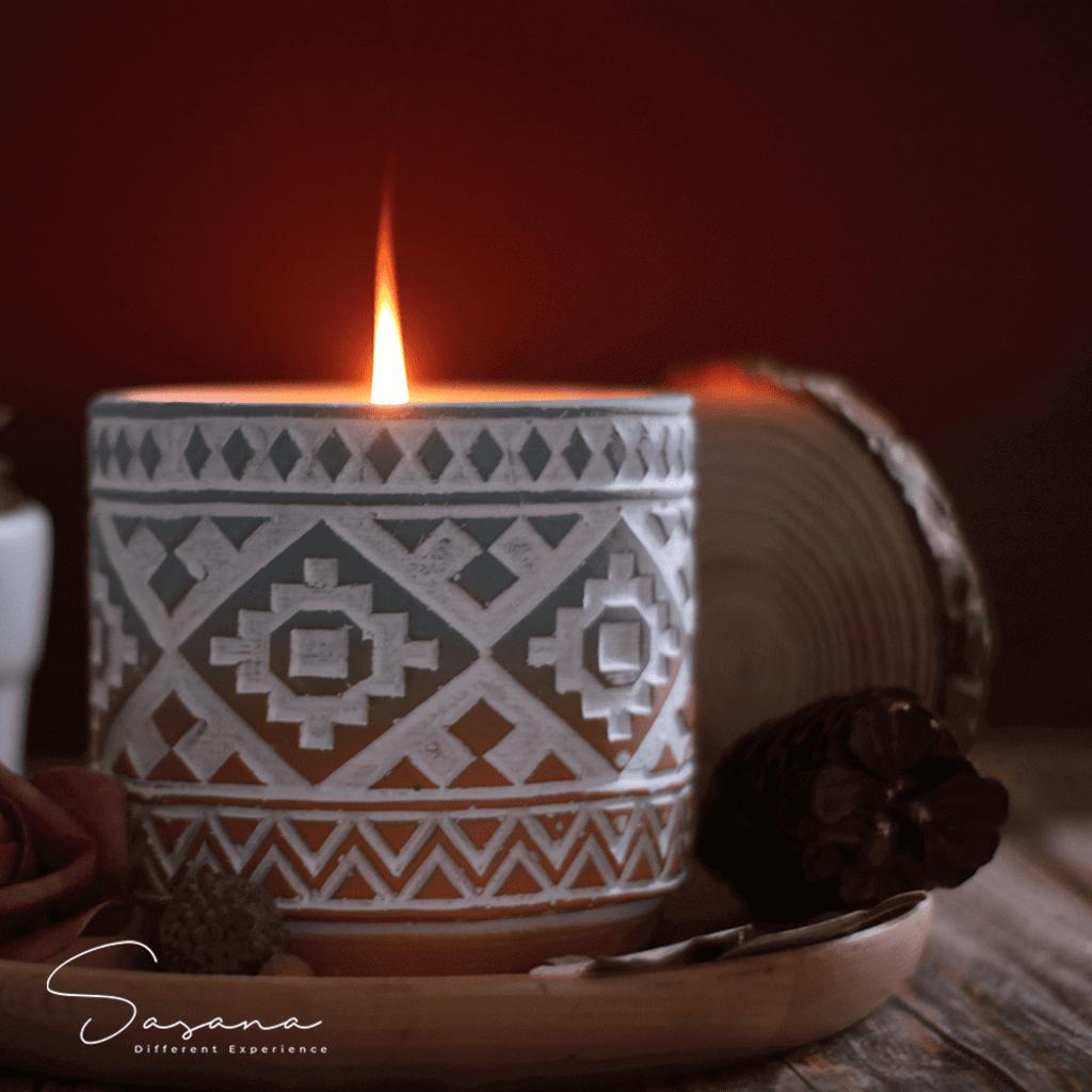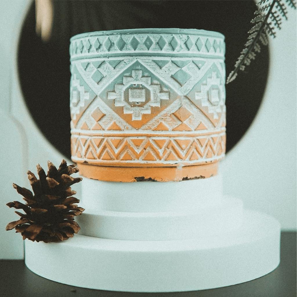 Họa tiết Tribal biến hũ nến thành món décor có giá trị thẩm mỹ, phù hợp phong cách vintage và boho.