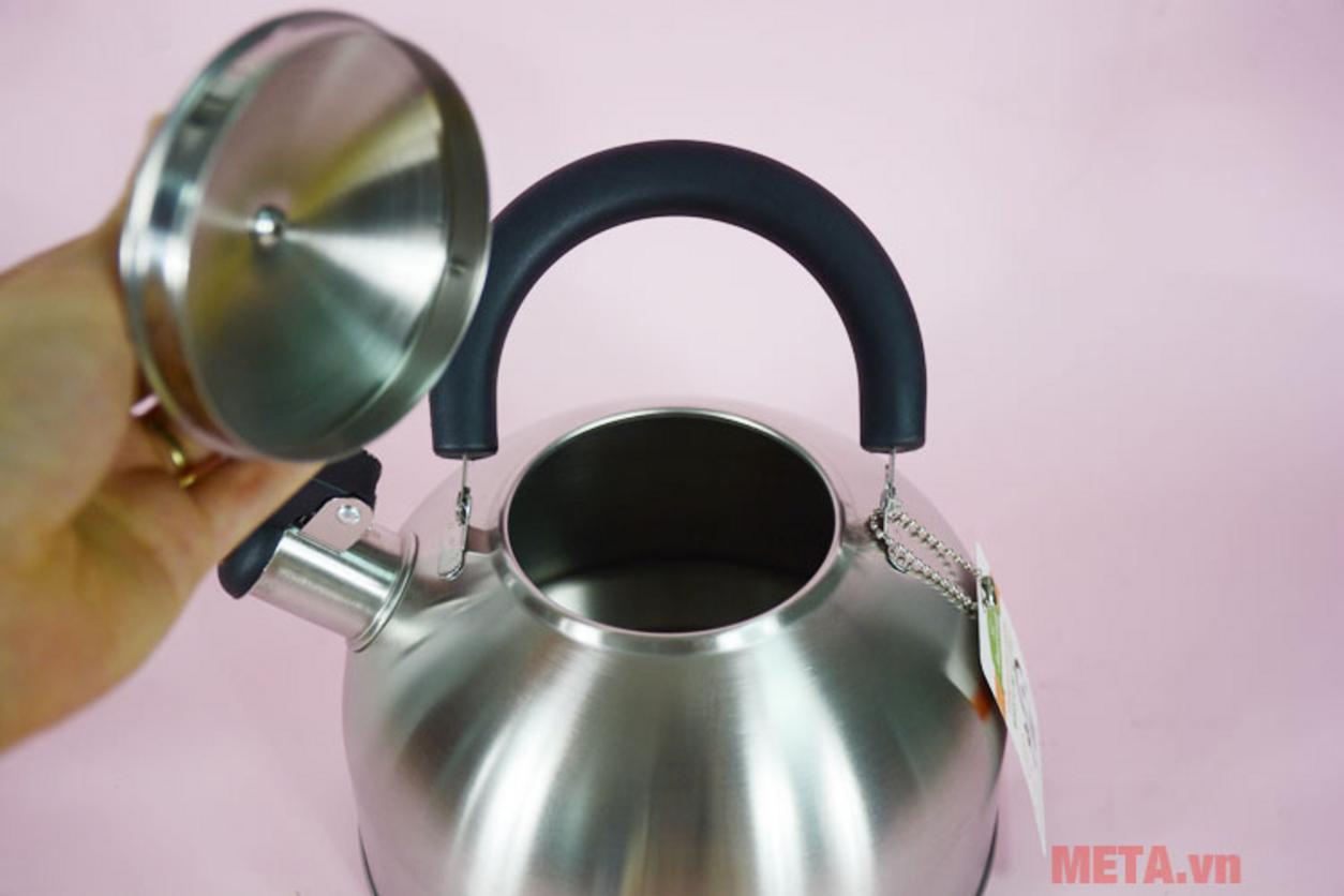 Thân ấm làm bằng inox 304 sáng bóng, không phản ứng với nước và dễ vệ sinh, nên bạn yên tâm về chất lượng nước dùng hàng ngày. Đáy inox 430 bắt từ giúp ấm dùng tốt trên bếp từ, phân phối nhiệt đều và rút ngắn thời gian đun, giúp tiết kiệm năng lượng cho gia đình.