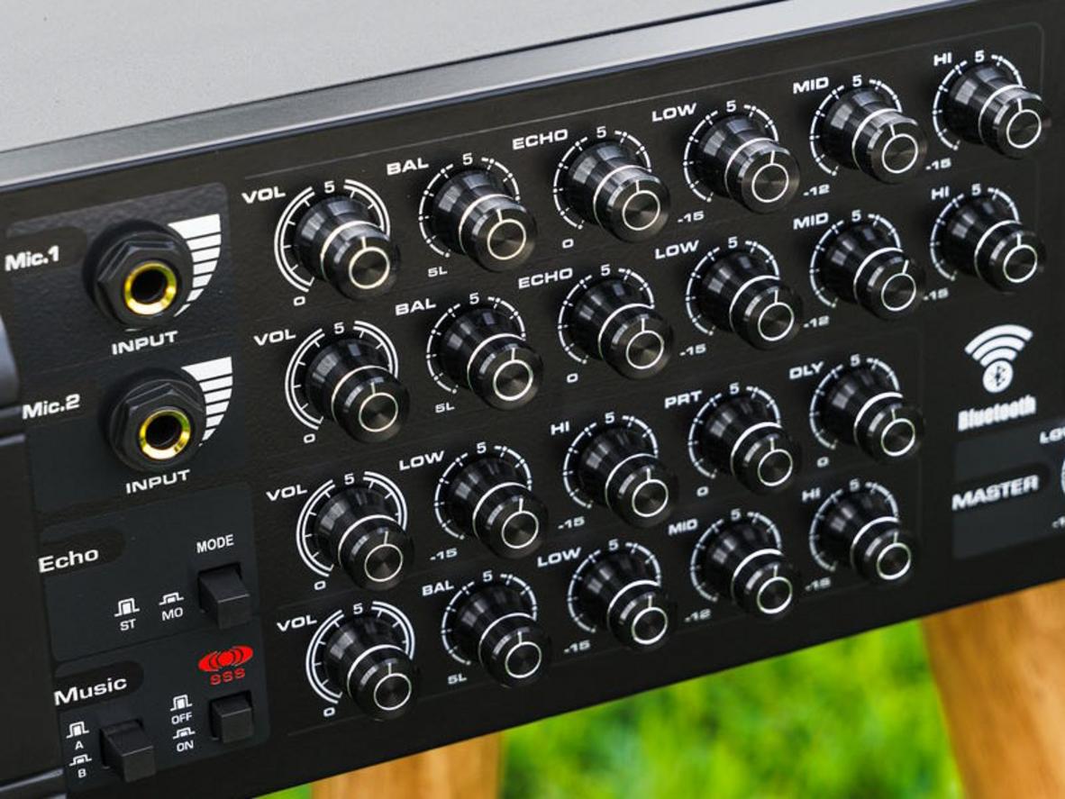 PA-1207A có dải tần rộng 20Hz–20kHz và T.H.D dưới 0.05%, nên giọng hát giữ được độ tự nhiên, không bị chói. Mạch echo kỹ thuật số kết hợp biến trở volume Nhật tạo tiếng vang dày nhưng kiểm soát tốt để không lấn át giọng chính. Kết quả: hát mượt, cảm xúc lên mạnh.