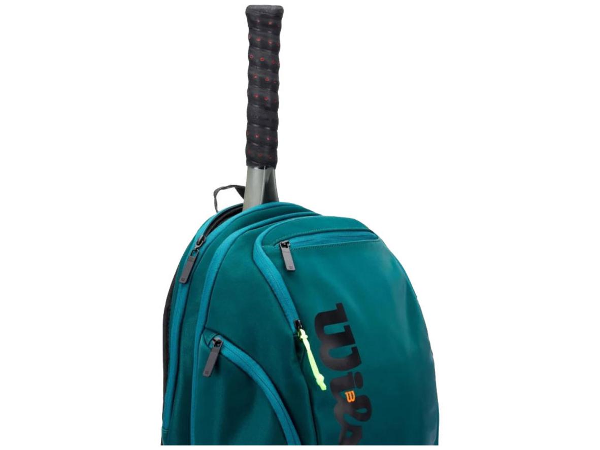 Bạn được bảo vệ vợt và laptop khi di chuyển giữa nhà và sân. Thiết kế Emerald Green chuyên nghiệp, gọn nhẹ và dễ phối đồ. Balo Tennis Wilson Blade V9 Super Tour WR8032001001 chứa hai vợt, ngăn Thermoguard và đệm cho laptop.