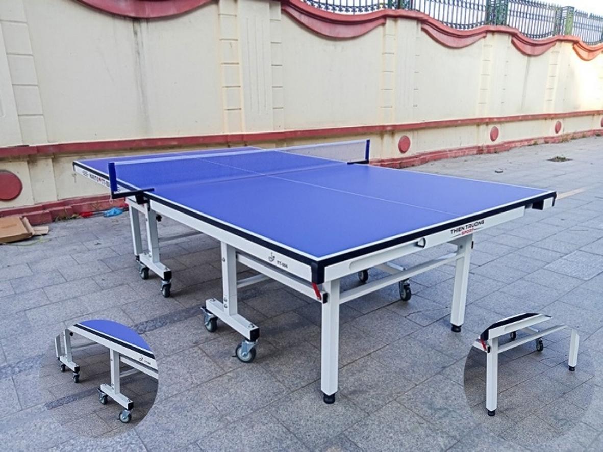Khung thép hộp và trọng lượng 113kg giữ bàn đứng vững, giảm rung khi chơi nhanh. Sơn tĩnh điện chống gỉ giúp sử dụng bền bỉ trong điều kiện thường gặp ở phòng thể thao hoặc sân tập ngoài trời có mái. Chân có thể điều chỉnh cân bằng, nên dù sàn không hoàn hảo bạn vẫn có mặt bàn phẳng để tập. Thiết kế này cho phép bạn đánh mạnh mà không lo lắc hoặc dịch chuyển bàn.