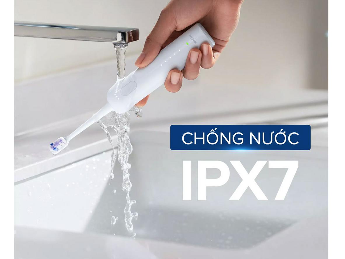 Động cơ Servo cung cấp lực chải ổn định, mạnh hơn bàn chải thông thường. Kết hợp pin lớn 2 x 900mAh, máy cho thời lượng sử dụng thực tế khoảng 30 ngày cho mỗi lần sạc (tùy tần suất và chế độ). Chuẩn chống nước IPX7 cho phép rửa trực tiếp dưới vòi.