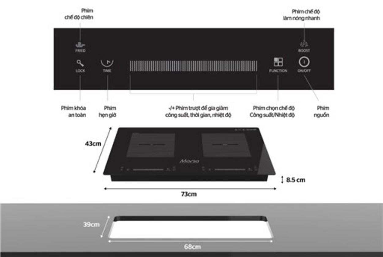 Nhập khẩu nguyên chiếc từ Thái Lan, bề mặt kính cường lực chịu nhiệt và điều khiển cảm ứng riêng biệt cho từng vùng, kèm tính năng Booster giúp làm nóng nhanh gấp 2. Bạn sẽ nấu canh và xào cùng lúc, giữ dưỡng chất thực phẩm và rút ngắn thời gian bếp.