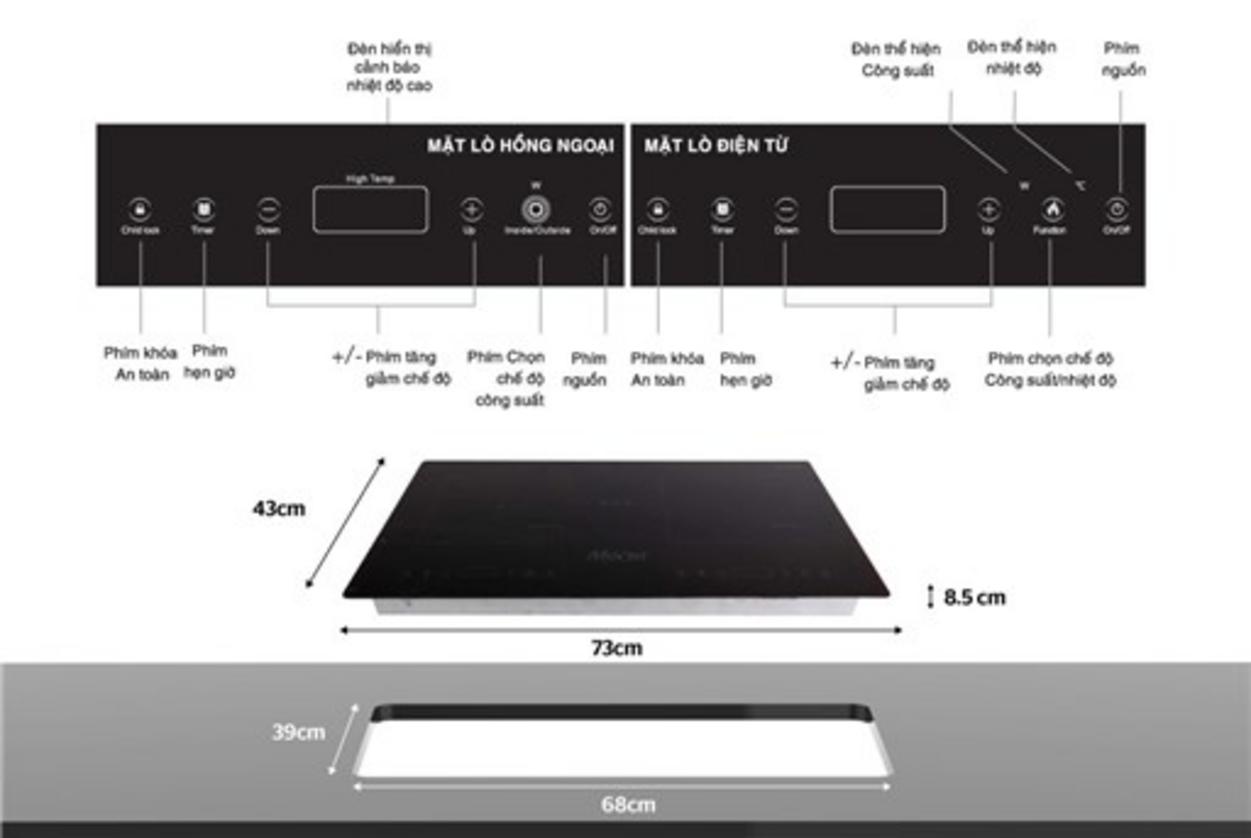 | Kích thước mặt bếp | 730 x 430 mm |