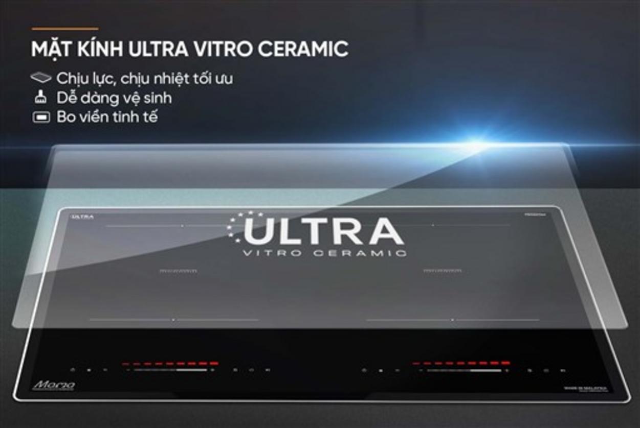 • Bền & dễ vệ sinh: Mặt kính Ultra Vitro Ceramic dày 4.0mm, chịu nhiệt tốt và lau chùi nhanh.