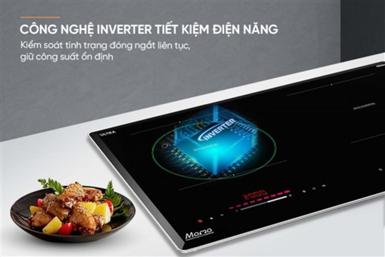 Tiết kiệm điện mỗi ngày nhờ kiểm soát công suất thông minh và giảm bật tắt liên tục. Công nghệ Inverter ổn định công suất, giúp bếp hoạt động êm và kéo dài tuổi thọ linh kiện. Bạn sẽ bớt lo về hóa đơn điện và chi phí bảo trì dài hạn.