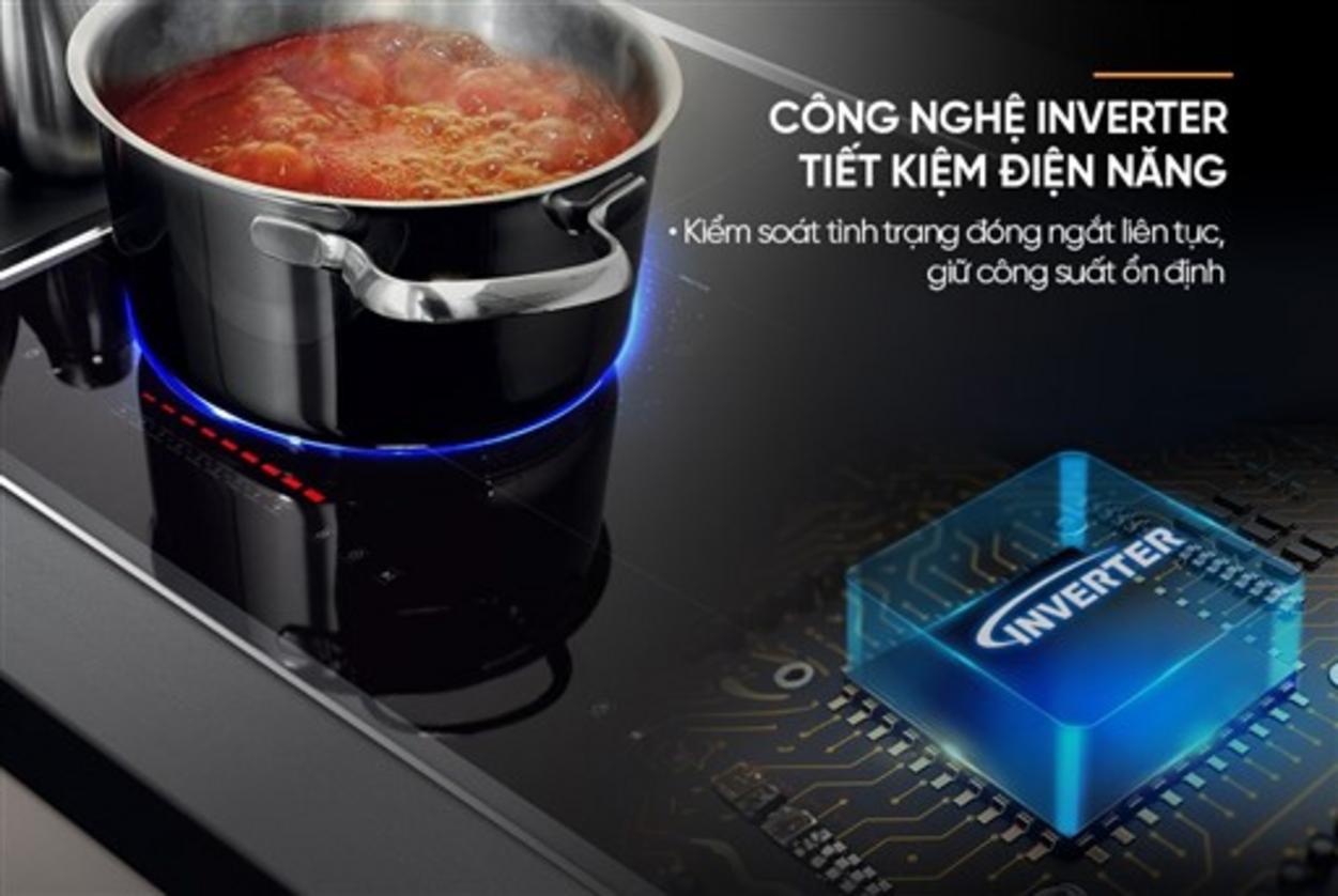 Inverter giữ công suất ổn định, giảm đóng/ngắt liên tục và giảm hao hụt so với bếp thường, giúp tiết kiệm điện hàng tháng.