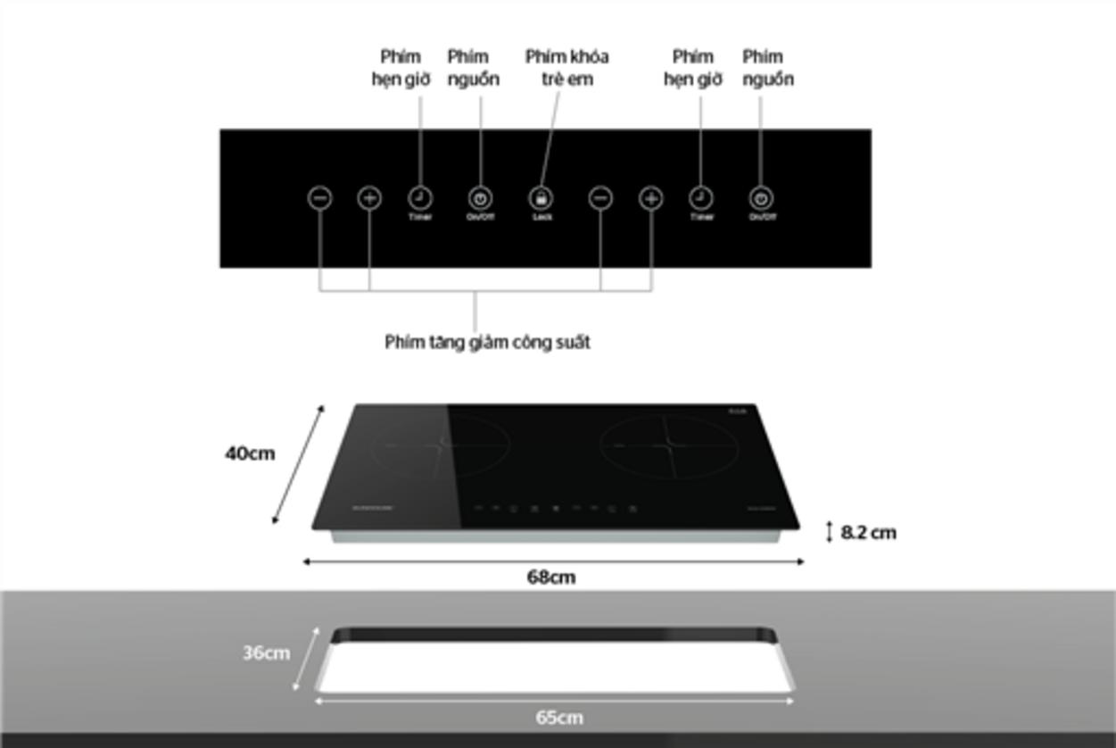 | Kích thước mặt bếp | 680 x 400mm |