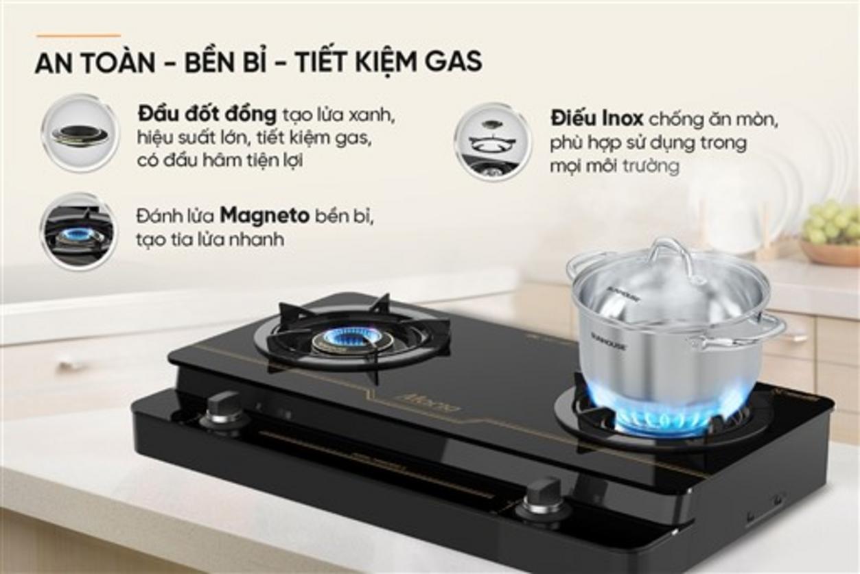 Bếp ga dương kính SUNHOUSE MMB33052-V là sản phẩm bếp đôi an toàn, tiết kiệm gas, với hệ thống đánh lửa Magneto và mặt kính cường lực sang trọng. Đây là giải pháp nấu nướng hiện đại phù hợp cho gia đình Việt: nấu nhanh, dễ vệ sinh và tiết kiệm chi phí gas hàng tháng cho người nội trợ bận rộn. Tại Siêu Thị Đại Việt, chúng tôi cam kết bán hàng chính hãng, kèm dịch vụ giao hàng và lắp đặt nhanh — chuẩn hãng, minh bạch và đáng tin cậy.
