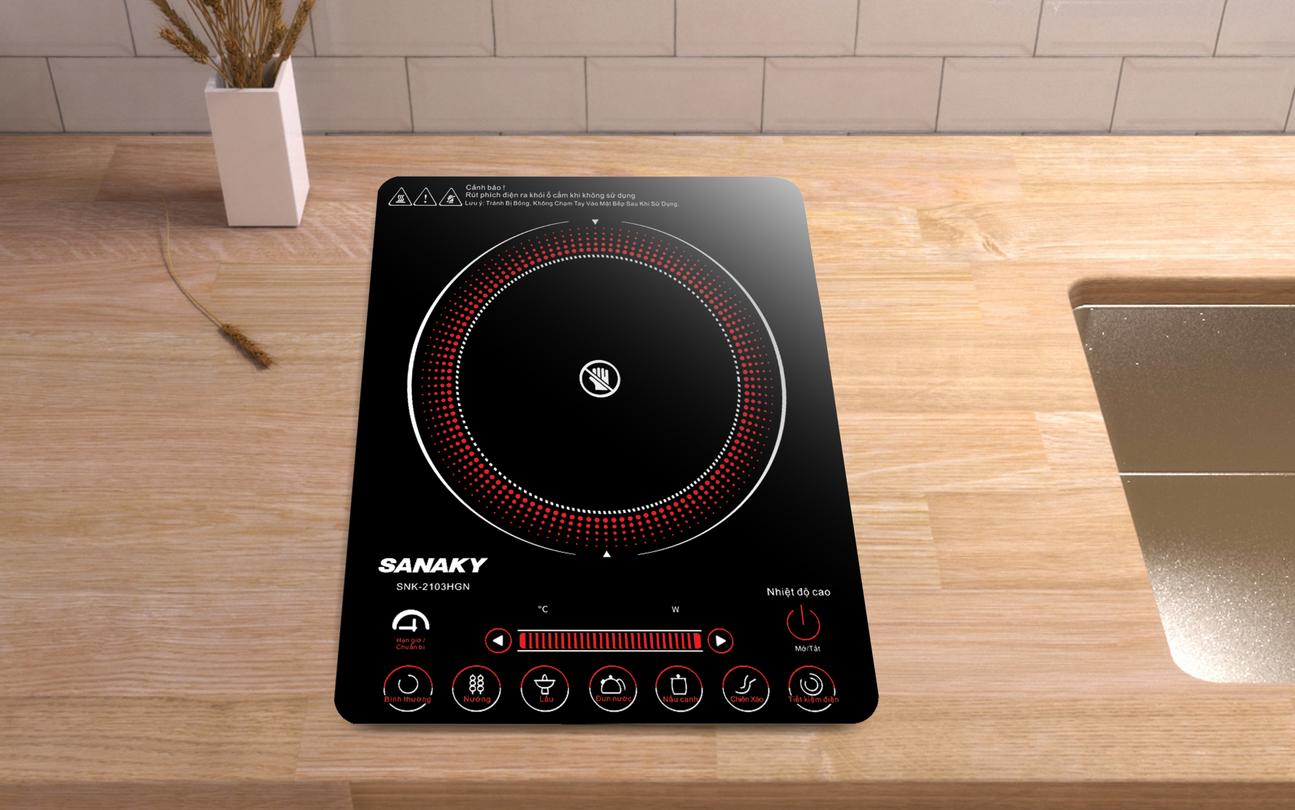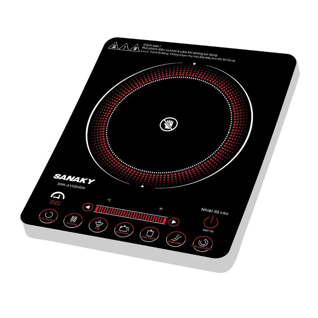 Bếp hồng ngoại Sanaky SNK-2103HGN là loại bếp đơn, công suất 2000 W, nổi bật với thiết kế nhỏ gọn, đa chức năng nấu nướng và khả năng không kén nồi.