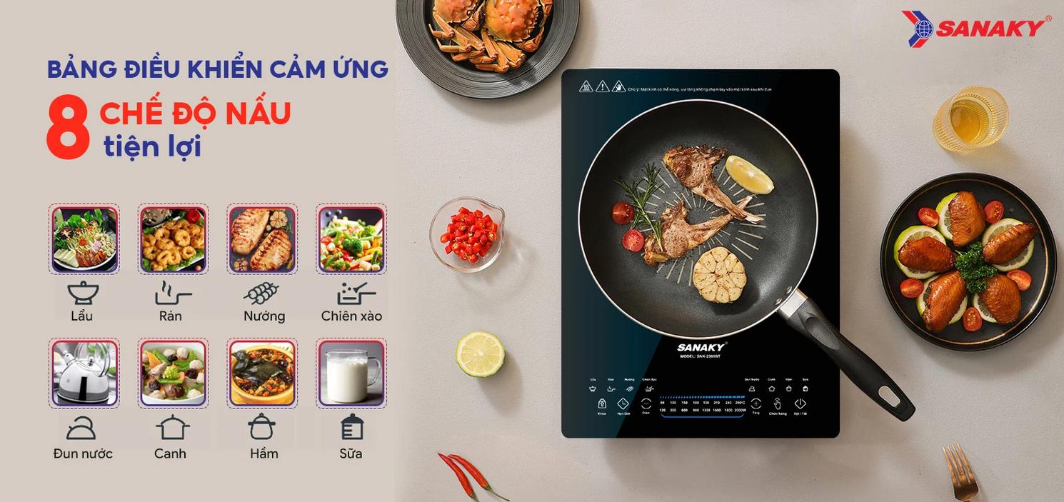| Bảng điều khiển | Cảm ứng, 8 chế độ nấu |