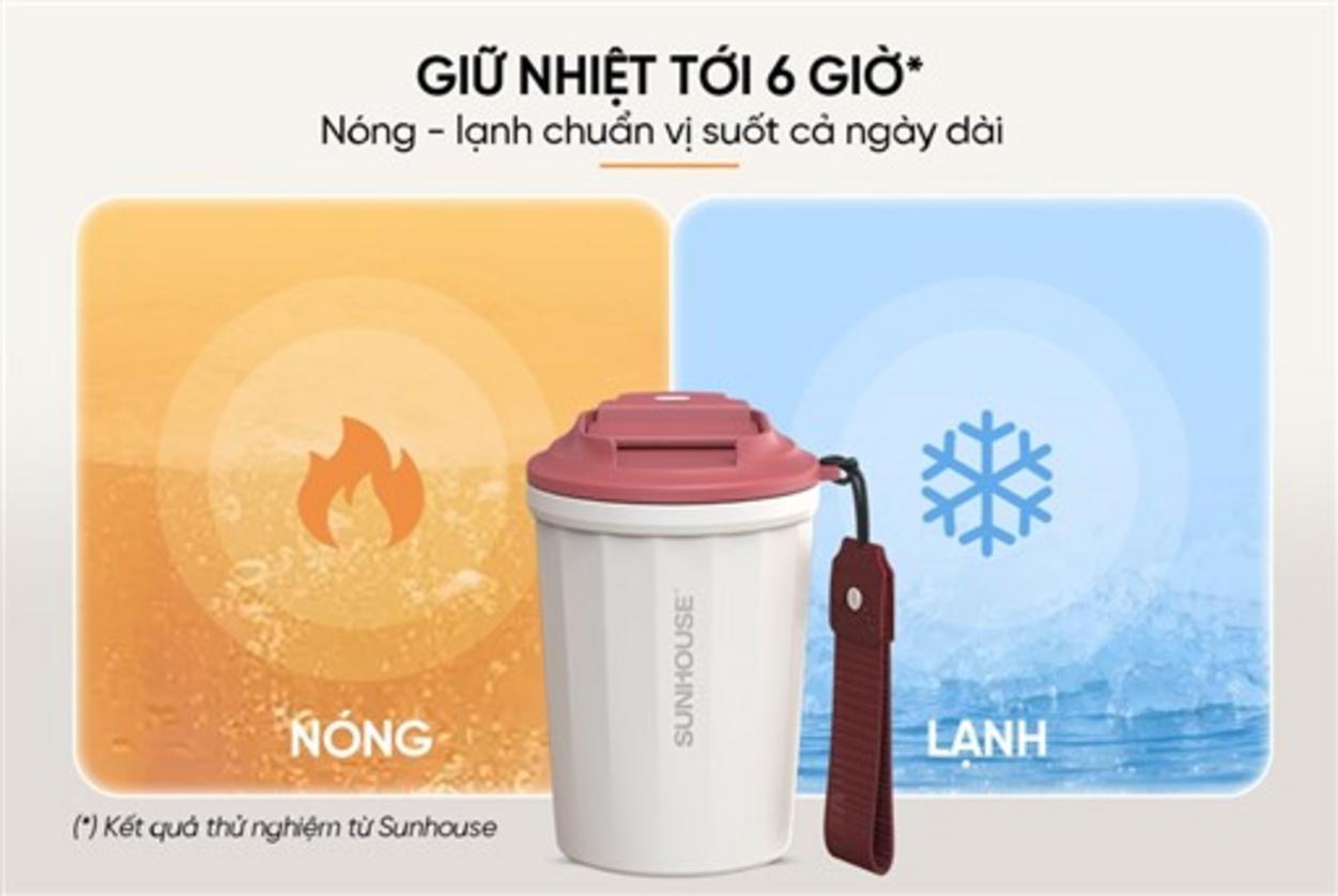 Bình cốc giữ nhiệt Mellow 390ml Sunhouse KS-TU390MW là dòng sản phẩm đồ dùng nhà bếp hiện đại, kết hợp giữa tính năng của bình giữ nhiệt và sự tiện lợi của cốc cầm tay. Cấu tạo 2 lớp giúp giữ nhiệt hiệu quả từ 6 đến 8 tiếng cho cả đồ uống nóng và lạnh. Giải pháp này đảm bảo tiện nghi cho học sinh, sinh viên, dân văn phòng, người hay di chuyển và mẹ bỉm — luôn có đồ uống yêu thích bên mình trong ngày dài. Tại Siêu Thị Đại Việt, chúng tôi cam kết cung cấp sản phẩm 100% chính hãng, bảo hành theo chuẩn hãng và hỗ trợ xuất hóa đơn VAT theo yêu cầu.