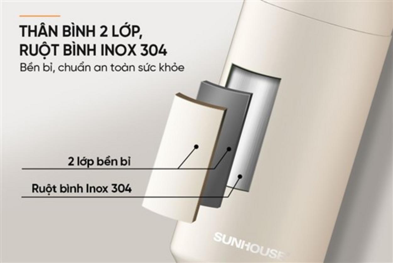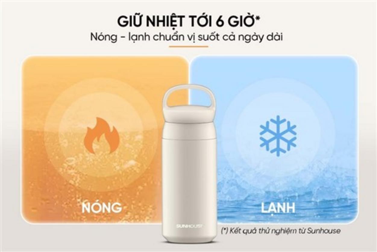 Bình giữ nhiệt Easy Go 350ml SUNHOUSE KS-TU350EW là sản phẩm được thiết kế để đáp ứng nhu cầu bảo quản đồ uống của gia đình Việt Nam hiện đại. Sản phẩm nhỏ gọn 350ml, thân 2 lớp cách nhiệt và ruột INOX 304 giúp giữ nóng/lạnh hiệu quả trong khoảng ~6–8 giờ. Đây là lựa chọn lý tưởng cho nhân viên văn phòng, sinh viên, phụ huynh chuẩn bị nước cho con đi học và người thường xuyên di chuyển.