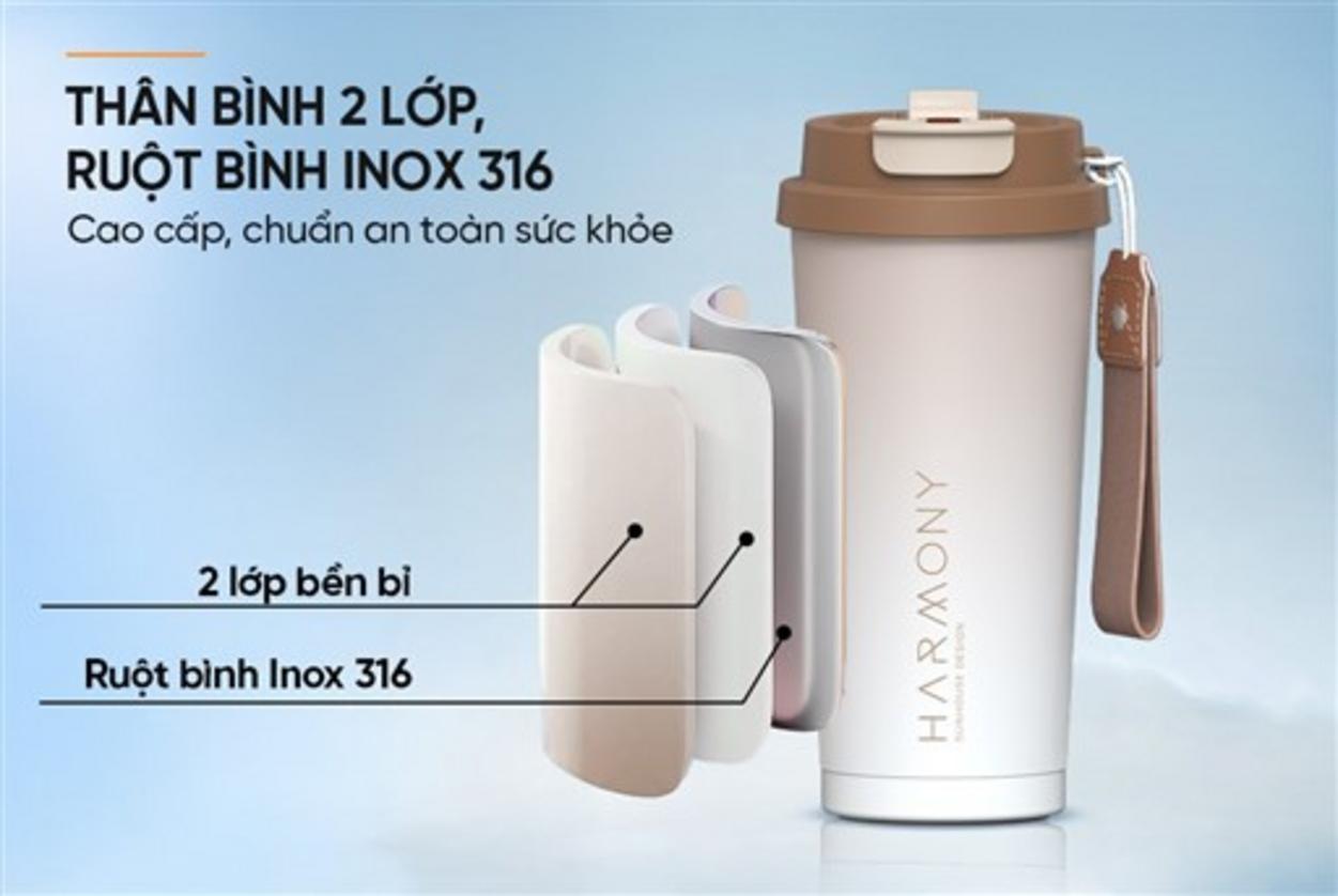 An tâm uống mọi lúc — ruột INOX 316 y tế không phản ứng với thức uống nóng hoặc lạnh, giúp giữ vị nguyên bản. Sản phẩm dùng ruột INOX 316 (chất liệu y tế) kết hợp vỏ INOX 304, tạo lớp bảo vệ chắc chắn. Điều này mang lại lợi thế chống ăn mòn và an toàn cho cả trẻ em và người lớn. Nhiều khách hàng đánh giá cao yếu tố an toàn và cho điểm 5 sao vì không ám mùi.