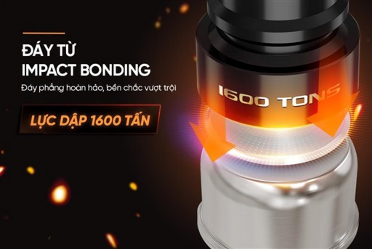 Đáy 5 lớp của bộ nồi tạo nên lợi ích nấu nhanh và chín đều cho mọi món ăn. Impact Bonding là kỹ thuật dập ghép nhiều lớp kim loại bằng lực nén, giúp lớp nhôm dẫn nhiệt nằm kẹp giữa hai lớp inox, từ đó truyền và tỏa nhiệt đều khắp đáy và thành nồi. Lớp đáy ngoài bằng inox 430 còn tối ưu khả năng bắt từ, nên bạn dùng thoải mái trên bếp từ. Kết quả bạn nhận thấy: rút ngắn thời gian nấu, ít điểm cháy và giữ ấm tốt hơn khi bếp tắt.