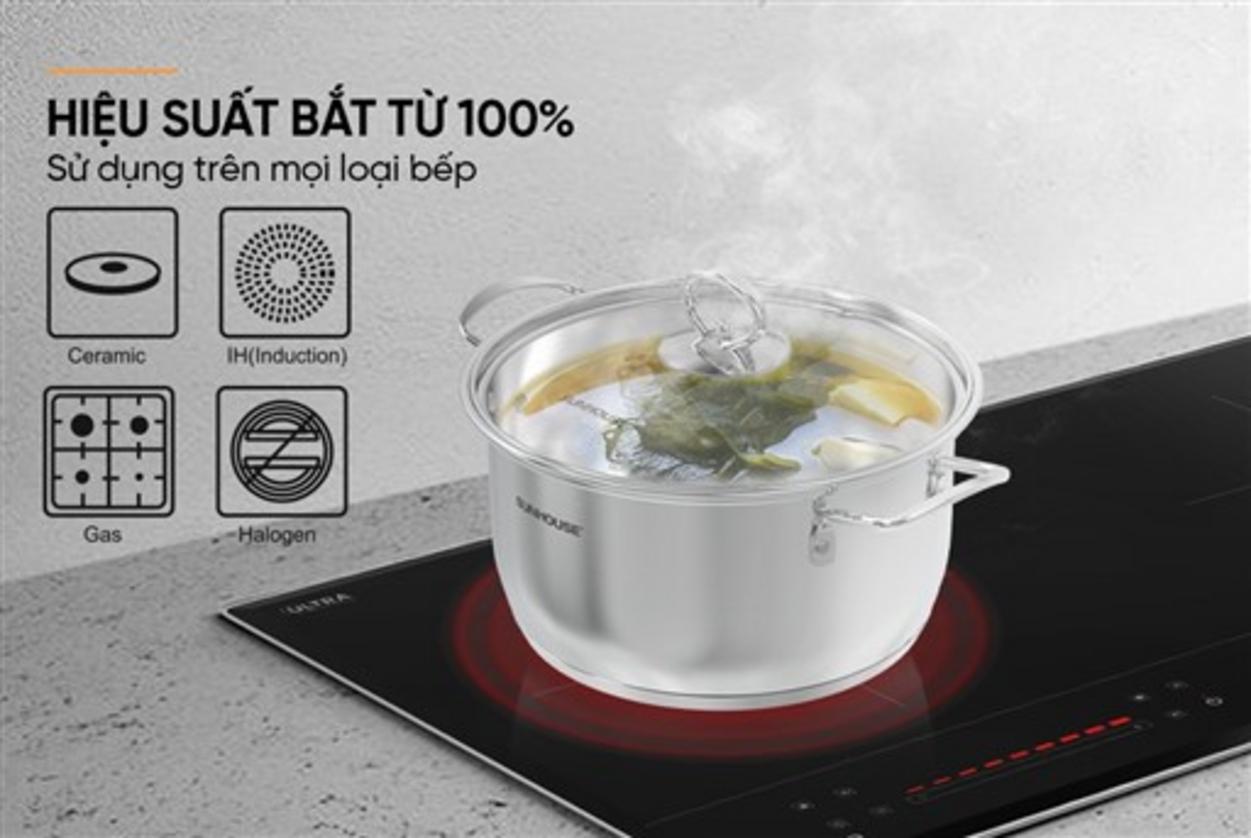Nấu nhanh, chín đều và dễ vệ sinh — bộ nồi này giúp bạn rút ngắn thời gian bếp núc mỗi ngày. BỘ NỒI INOX 5 ĐÁY SUNHOUSE SHG788 thiết kế dành cho gia đình Việt: bền, dùng được trên bếp từ và lau chùi tiện lợi. Bạn sẽ cảm thấy nấu ăn nhẹ nhàng hơn mỗi bữa.