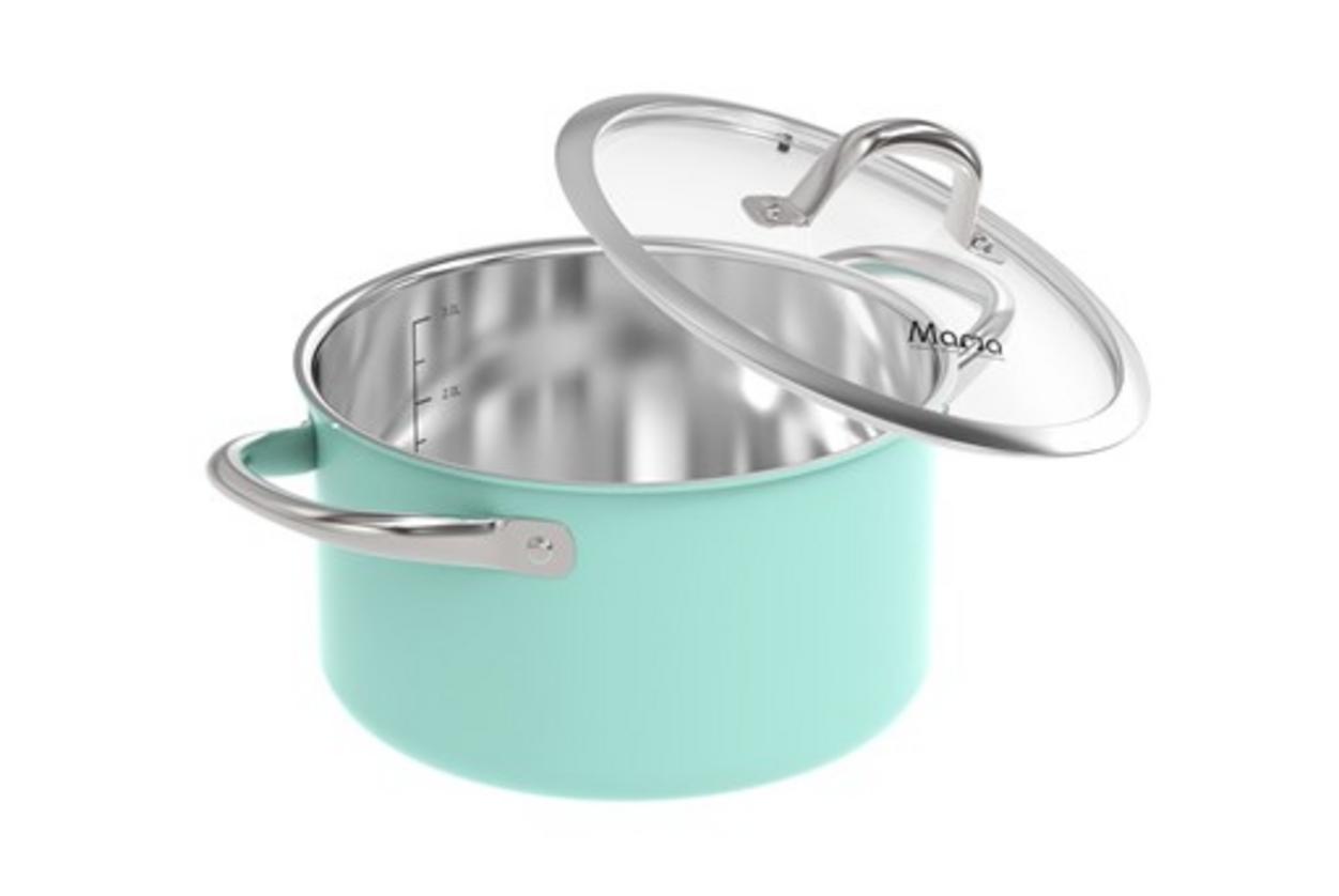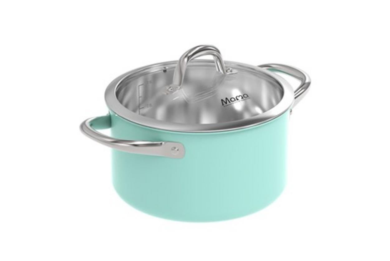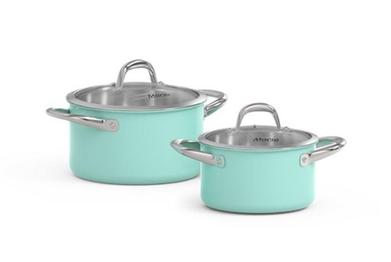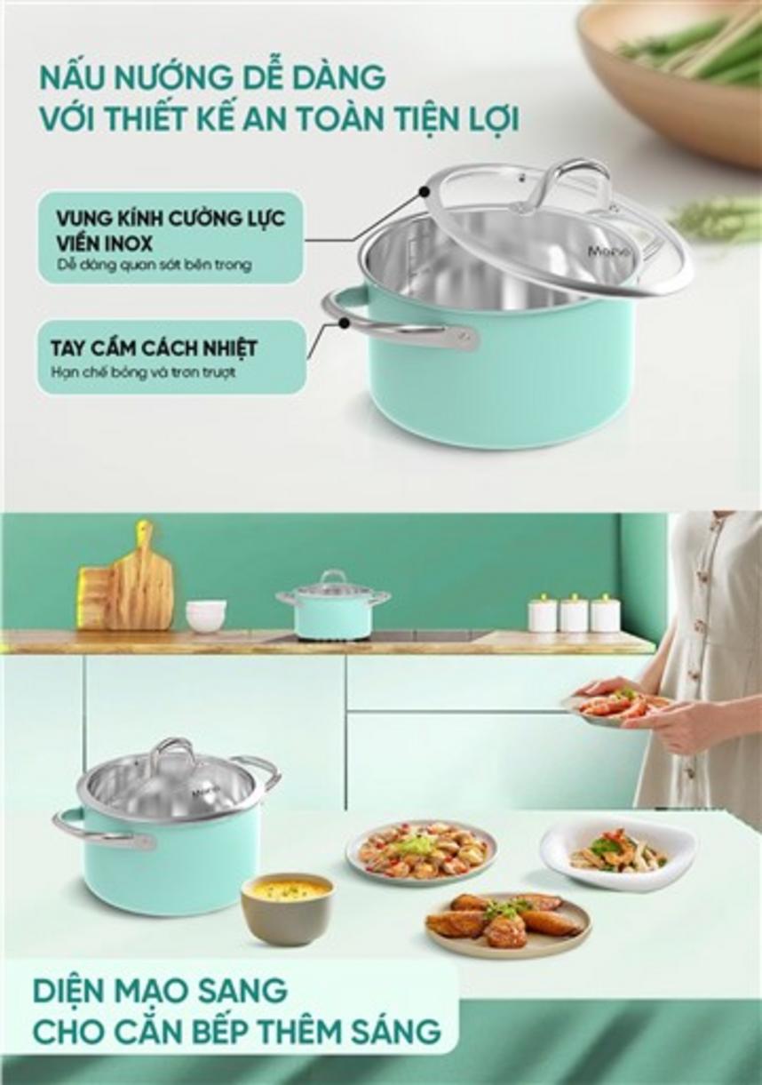 Bộ gồm hai nồi kích thước Ø16 cm (cao 9,5 cm) và Ø20 cm (cao 11,5 cm), phù hợp để nấu món hàng ngày cho gia đình 3–5 người. Trọng lượng cân đối, dễ cất giữ; dùng tốt trên bếp từ, gas, hồng ngoại và bếp điện. Màu xanh tươi tạo điểm nhấn cho bếp hiện đại, đồng thời giúp bạn linh hoạt chuẩn bị nhiều món mà không chiếm nhiều diện tích tủ bếp.