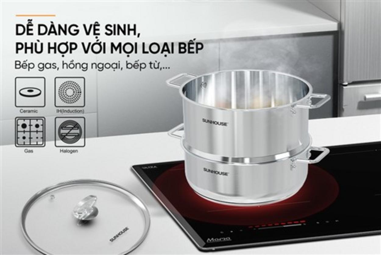 Bộ nồi xửng Sunhouse SHG507-24C có thể dùng trên bếp từ không?