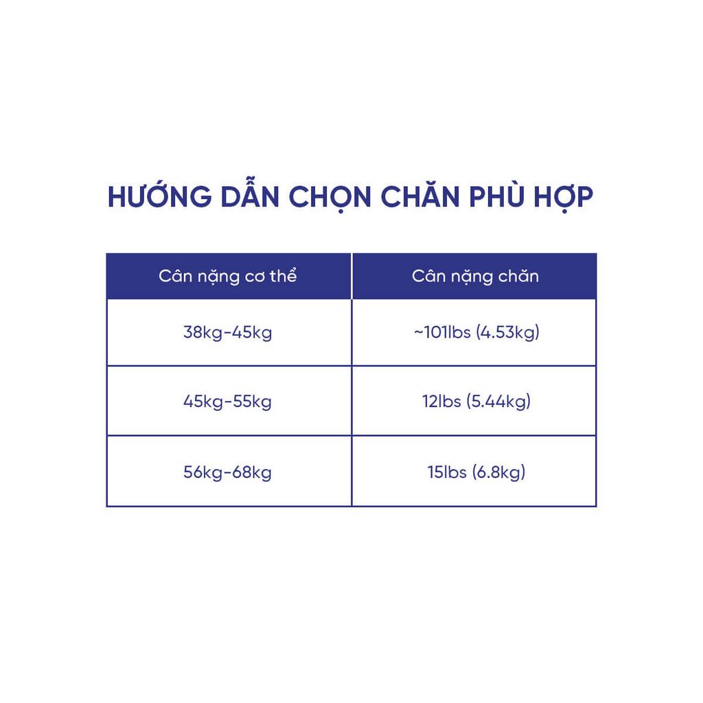 Áp dụng nguyên tắc chọn chăn khoảng 10% trọng lượng cơ thể: chăn 6.8kg phù hợp cho người nặng khoảng 60–85kg. Mẹo nhỏ: nếu bạn nằm giữa hai mức cân, ưu tiên chọn chăn nhẹ hơn để đảm bảo thoải mái và dễ di chuyển.