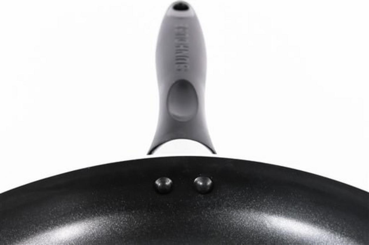 Tay cầm nhựa chịu nhiệt bắt vít chắc chắn cho cảm giác an toàn khi nấu. Tay cầm cách nhiệt giúp Bạn cầm nắm an toàn, thao tác di chuyển chảo nhẹ nhàng. Bề mặt ngoài phủ sơn tĩnh điện chống bám bẩn giữ chảo sạch lâu và dễ lau chùi. Lỗ treo tiện lợi giúp tiết kiệm không gian bếp và giữ bếp gọn gàng.