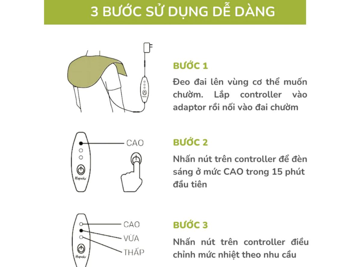 Nhiệt hồng ngoại thẩm thấu sâu, giảm đau và giãn cơ ngay sau 20–30 phút sử dụng. Tấm sinh nhiệt sử dụng nguồn ra thấp (khoảng 5V) để giữ nhiệt ổn định mà không gây bỏng. Thiết kế có cơ chế tự ngắt sau 60 phút, giảm rủi ro quá nhiệt; bạn có thể dùng adapter, sạc dự phòng hoặc cổng USB rất tiện khi di chuyển. Thời gian làm ấm ban đầu thường là 10–12 phút; một lần chườm khuyến nghị 30–40 phút để cảm nhận hiệu quả tối ưu.