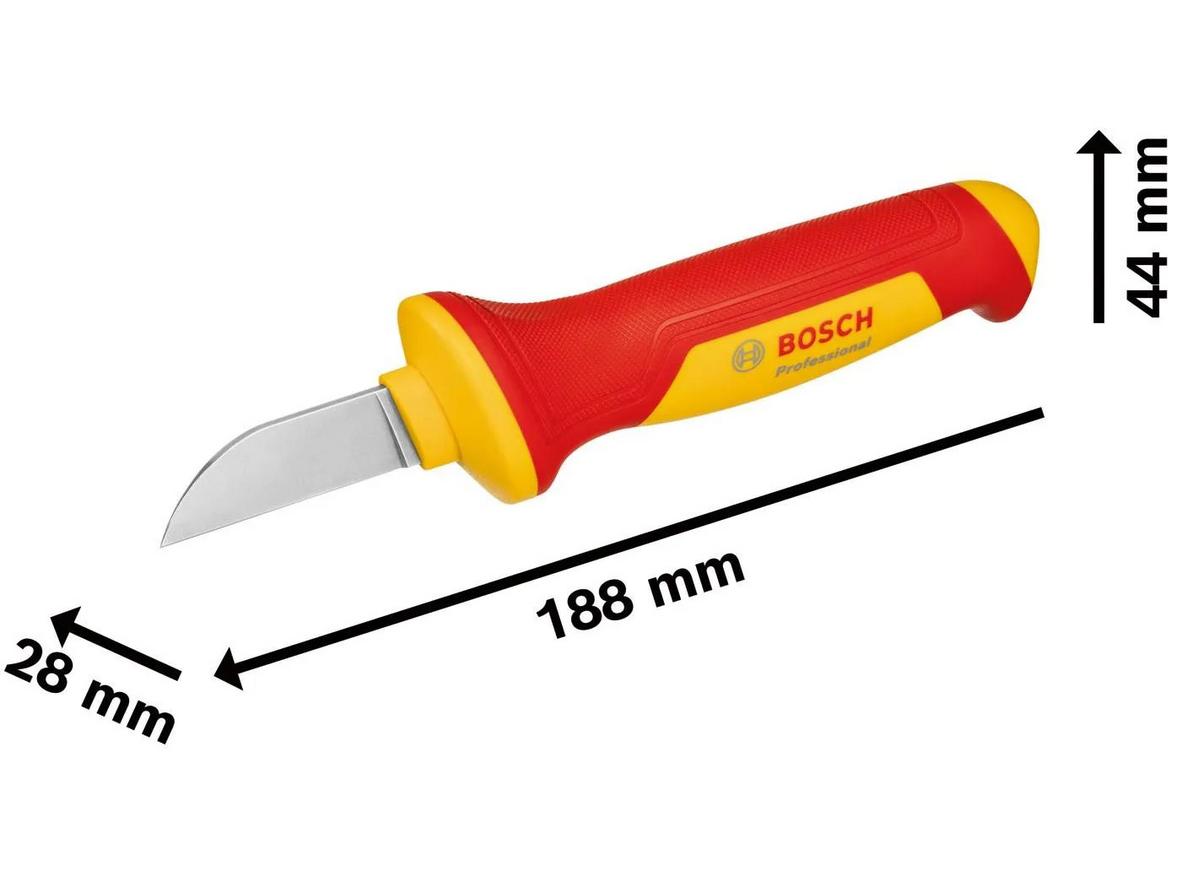 • Định nghĩa: Dao rọc cáp cách điện Bosch 1600A02NF5 là dao chuyên dụng để rọc vỏ cáp an toàn; đạt chuẩn VDE 1.000V và được kiểm nghiệm trên 10.000V để bảo vệ bạn khi thao tác gần nguồn điện.