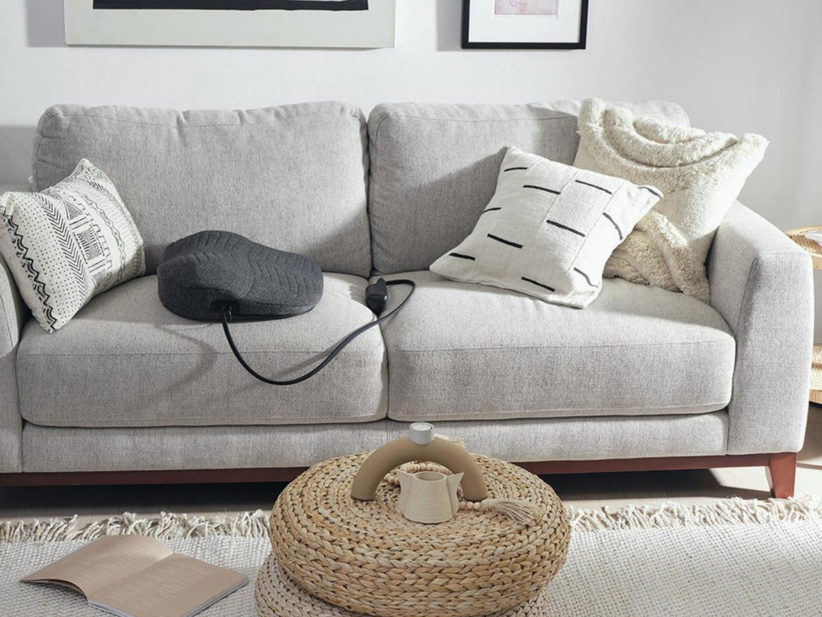 1. Đặt đệm trên ghế/sofa/giường sao cho vùng lưng tiếp xúc đều, tựa lưng thoải mái.