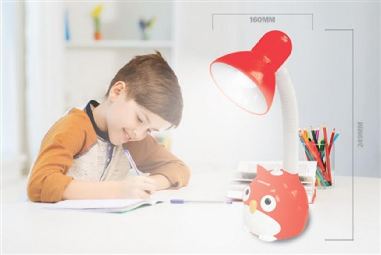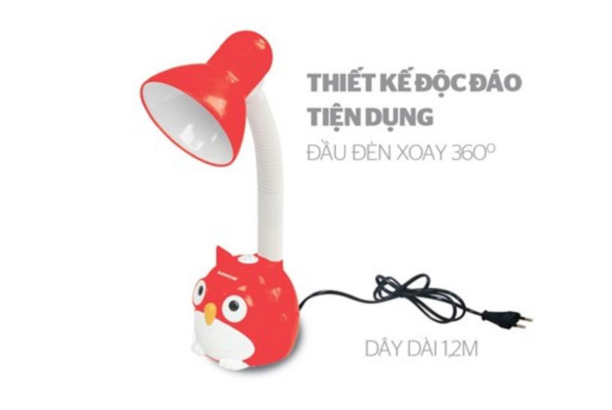 Đèn bàn SUNHOUSE SH-SL-02R là mẫu đèn bàn học tập có thiết kế ngộ nghĩnh hình cú mèo, được làm từ chất liệu nhựa ABS cao cấp và thép sơn tĩnh điện, với đầu đèn có thể xoay 360 độ linh hoạt. Đèn có đui E27 phổ dụng, công suất tối đa 40W và đui sứ chịu nhiệt, phù hợp cho bàn học nhỏ gọn.
