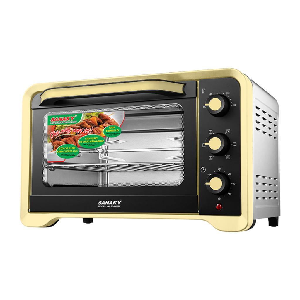 Lò nướng Sanaky VH-309S2D/VH-309N2D là mẫu lò nướng điện dung tích 30 lít, phù hợp cho gia đình nhỏ, với các tính năng như quạt đối lưu, xiên quay và cửa kính 2 lớp an toàn.