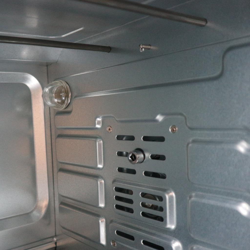Thiết kế khoang rộng cùng xiên quay giúp bạn tiết kiệm thời gian chế biến phục vụ. Phụ kiện đi kèm như khay, vỉ và tay cầm tháo tiện lợi hỗ trợ thao tác nhanh. Với dung tích này, lò phù hợp gia đình 4–6 người hoặc quán nhỏ cần năng suất vừa phải.