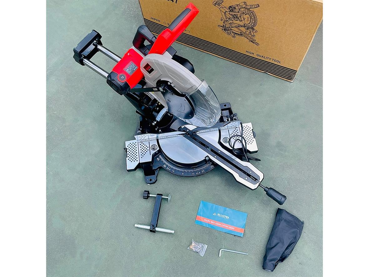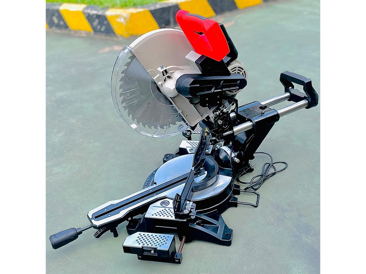 Lưỡi 305mm kết hợp đèn laser cho đường cắt sâu và chính xác, giảm phế liệu ngay lần cắt đầu. Laser giúp bạn định vị nhanh, hạn chế đo đạc thủ công, nhất là với thanh nhôm dài. Khi đường cắt chuẩn từ đầu, sản phẩm hoàn thiện đẹp hơn — tăng giá trị bán và giảm thời gian sửa chữa.