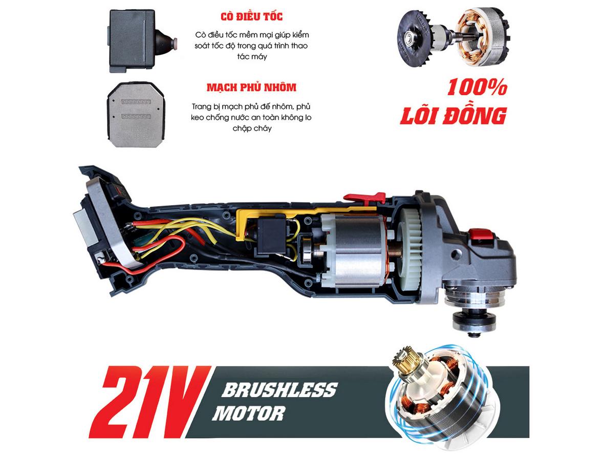 Bạn nhận sức mạnh tương đương máy có dây mà không bị dây vướng. Động cơ brushless giảm ma sát, ít nóng hơn và gần như không cần bảo trì định kỳ. Thiết kế lõi đồng đảm bảo truyền lực trực tiếp, cho tốc độ cắt ổn định trên nhiều vật liệu. Kết quả: ít gián đoạn, ít thay thế linh kiện, ca làm việc trôi chảy hơn.