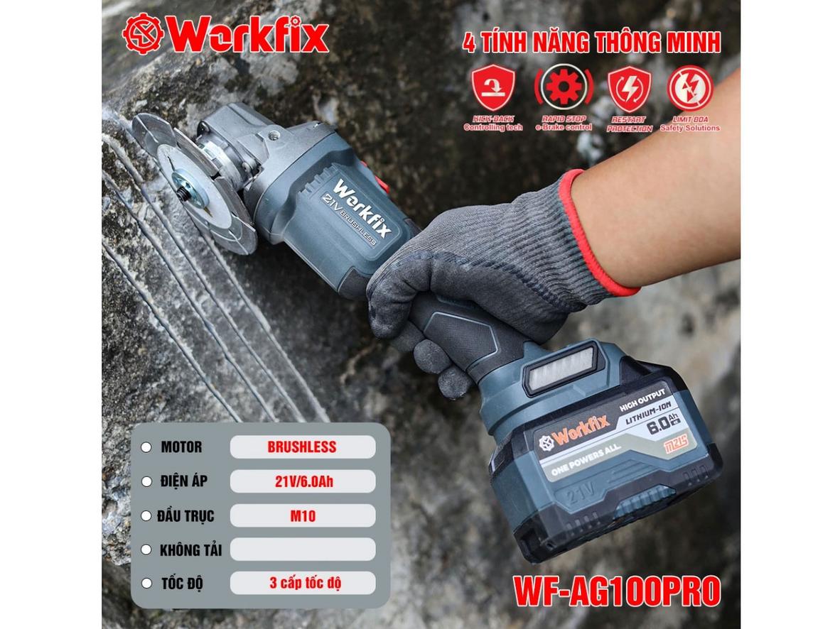 Bạn nhận được an tâm tối đa khi đầu tư cho hiệu suất và an toàn: bảo hành chính hãng, hỗ trợ kỹ thuật nhanh và đổi trả rõ ràng. WF-AG100PRO mang sức mạnh tương đương máy có dây nhưng linh hoạt (21V, 15 cell ~6.0Ah; tốc độ tới 9.000–10.000 RPM; đĩa 100 mm).