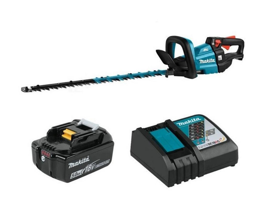 Hệ sinh thái pin Makita 18V giúp bạn làm việc ngoài trời linh hoạt, dễ thay pin và tận dụng pin hiện có nếu bạn đã dùng Makita. Pin 18V (ví dụ BL1850B 5.0Ah) cùng sạc nhanh DC18RC thường được cung cấp trong bộ kit, mang lại thời gian chạy thực tế đủ để hoàn thành nhiều công việc trong vườn. Trọng lượng tổng thể hợp lý giúp thao tác thoải mái, giảm mỏi khi tỉa lâu.