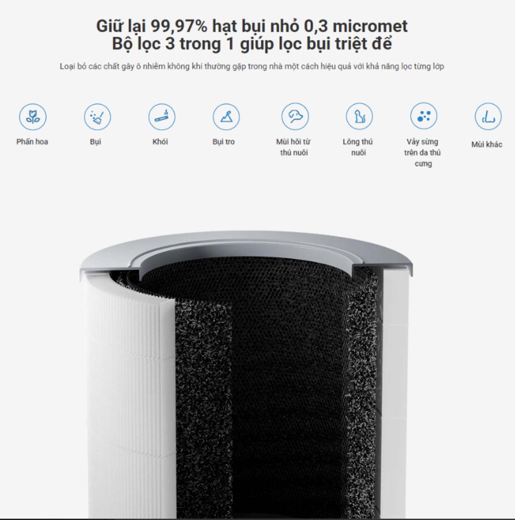 | Bộ lọc | Bộ lọc 3‑in‑1 (lọc thô + True HEPA H13 + than hoạt tính) |