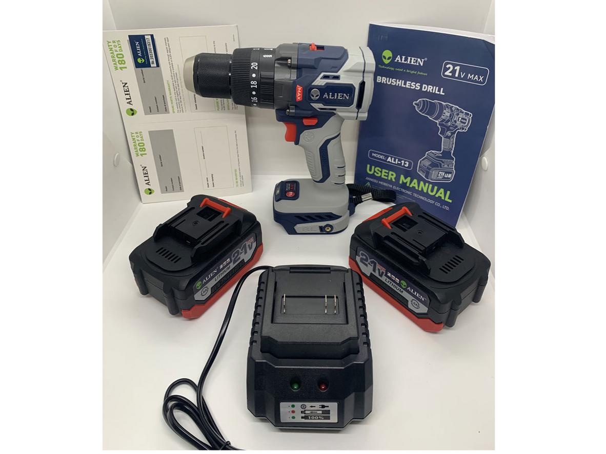 • Định nghĩa: Máy khoan động lực pin Alien ALI-13 SET là bộ khoan và bắt vít công suất cao, trang bị động cơ không chổi than (brushless) và 2 pin Lithium 21V/4.0Ah—thiết kế cho công việc nặng hơn so với máy gia dụng. Mua, dùng, hoàn thành nhanh.