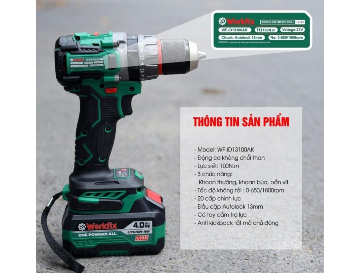 Review Máy khoan pin Workfix WF-ID13100AK