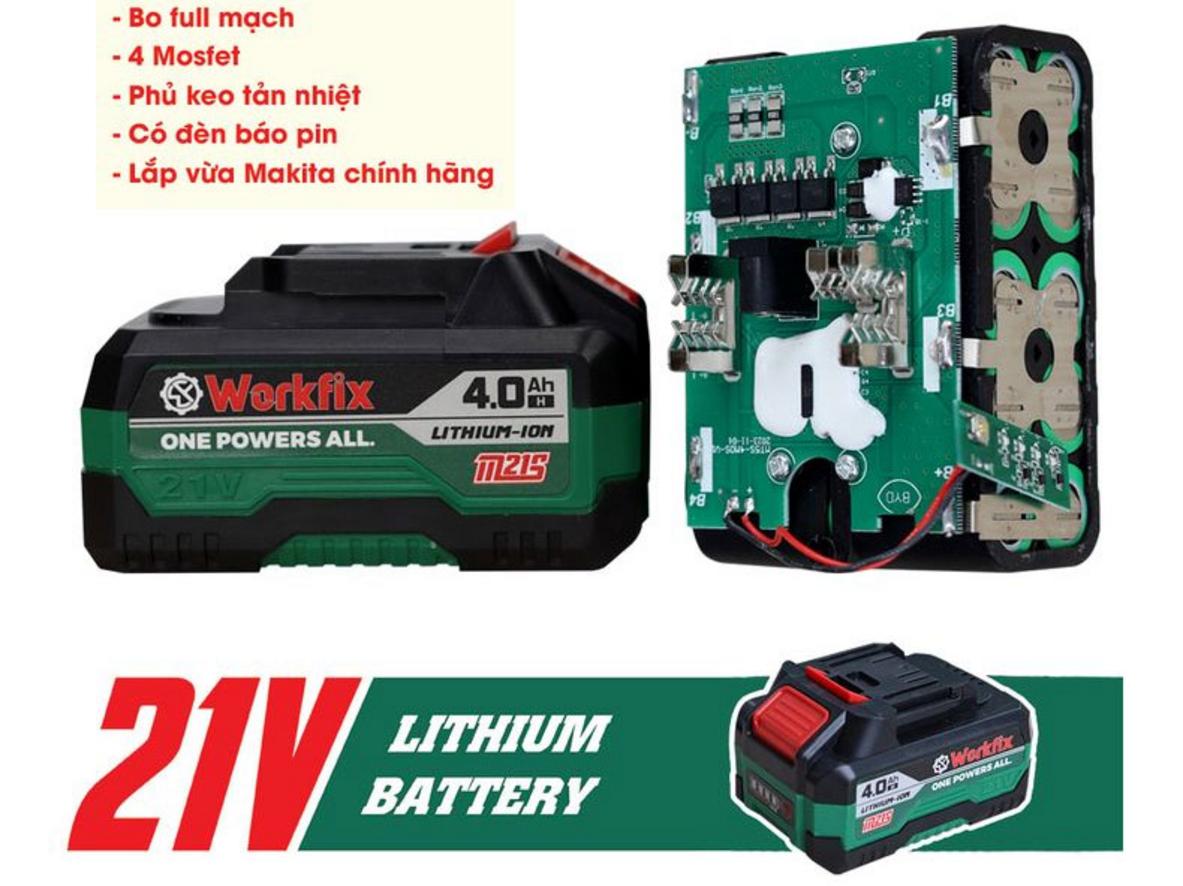 Pin 21V/4Ah cho phép bạn làm việc liên tục với tải nhẹ đến trung bình khoảng 3–4 giờ thực tế. Nghĩa là ngày làm việc dài ít bị gián đoạn. Nếu cần làm liên tục, chuẩn bị thêm pin dự phòng để thay nhanh. Sạc nhanh giúp bạn trở lại công việc trong thời gian ngắn.