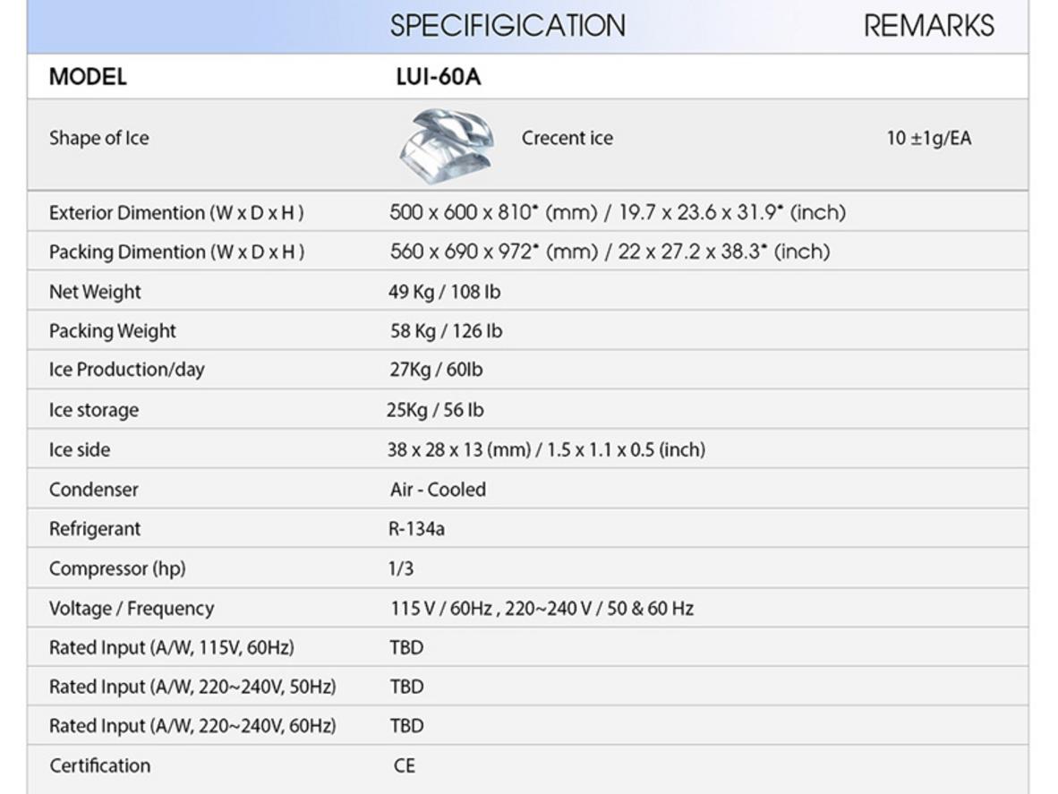 Máy làm đá Kistem LUI-60A công suất bao nhiêu?