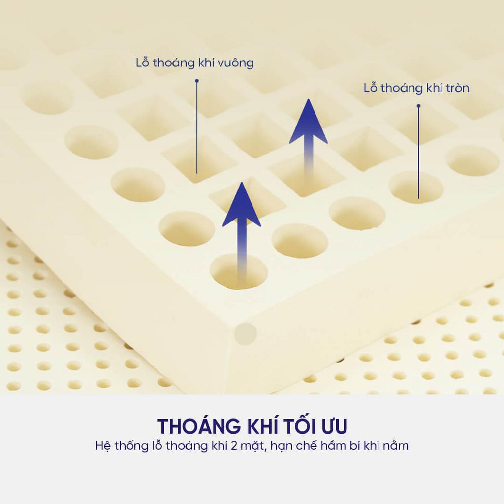 Vì sao điều này quan trọng với bạn? Nệm được làm từ 100% mủ cao su thiên nhiên, kết hợp hàng triệu lỗ nhỏ trên bề mặt và lỗ vuông lớn ở mặt dưới giúp thoáng khí tối ưu và nâng đỡ đa vùng. Bạn sẽ cảm nhận ngay sự khác biệt: nằm êm, giữ cột sống thẳng và ít đau mỏi sau khi thức dậy.