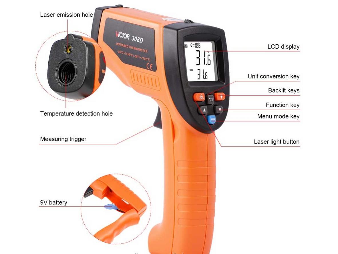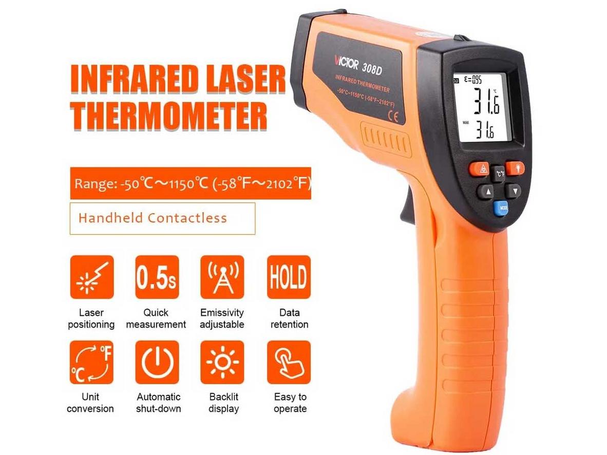 Review Nhiệt kế hồng ngoại Victor 308D (-50 độ C đến 1.150 độ C)