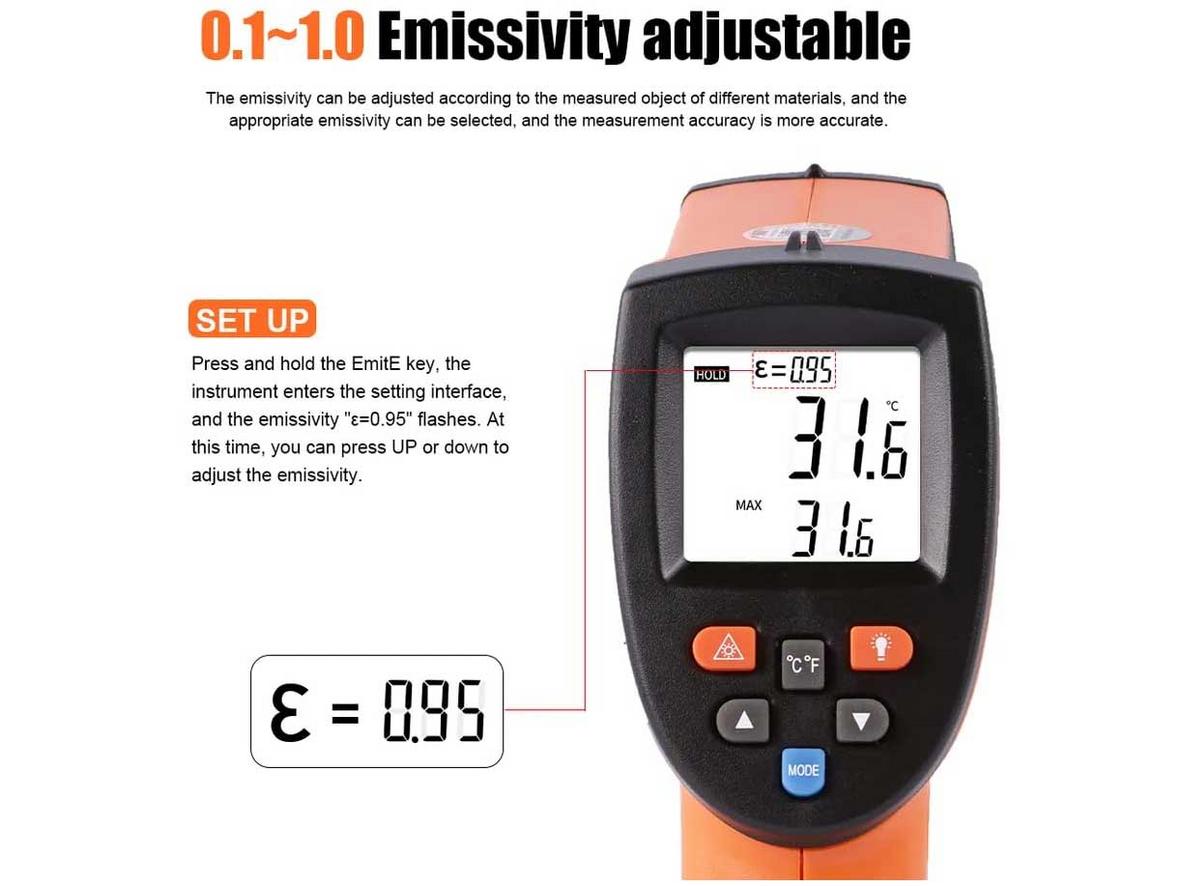 Việc này có ý nghĩa thực tế khi bạn chuyển từ đo vỏ động cơ sang bề mặt kim loại bóng. Chỉnh emissivity, bấm cò, đọc ngay — không còn suy đoán. Kết quả ổn định giúp giảm sai sót trong kiểm tra định kỳ và bảo trì khẩn cấp.