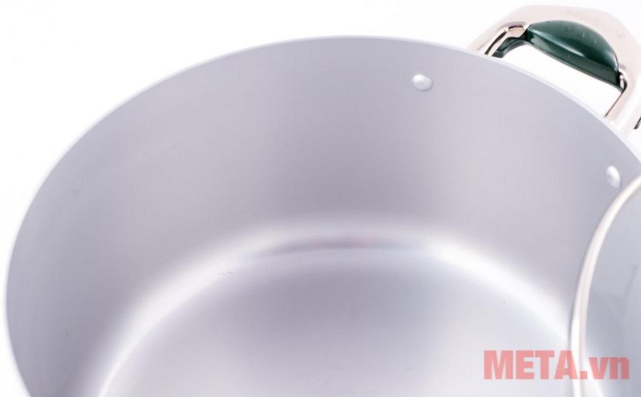 Thân nhôm anod dày 2.4–2.45 mm giúp nồi nóng nhanh và giữ nhiệt tốt. Công nghệ Anod Hàn Quốc tạo bề mặt cứng, ít trầy xước và bám dính. Bạn sẽ tiết kiệm thời gian và ít phải thay nồi trong nhiều năm.
