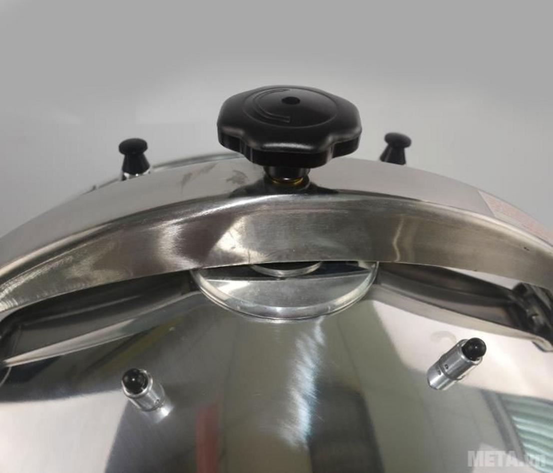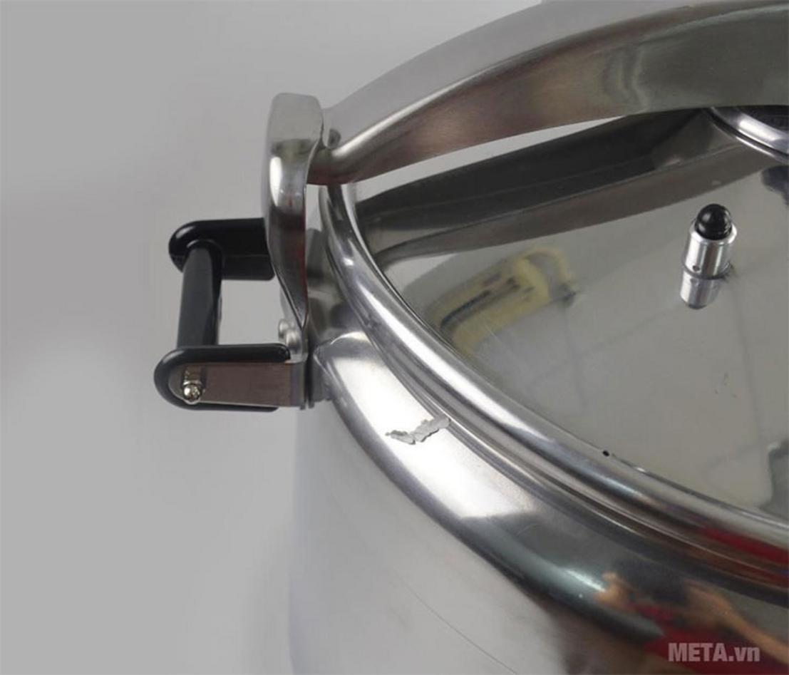 Hệ thống an toàn giảm rủi ro bỏng và xì hơi bất ngờ. Nồi trang bị gioăng silicon và hệ van xả kép giúp giữ kín, kiểm soát áp suất và xả an toàn khi cần. Nắp trượt gài khóa chặt để tránh mở nắp khi còn áp suất trong nồi. Những tính năng này bảo vệ nhân viên và giảm thiểu sự cố trong bếp bận rộn.