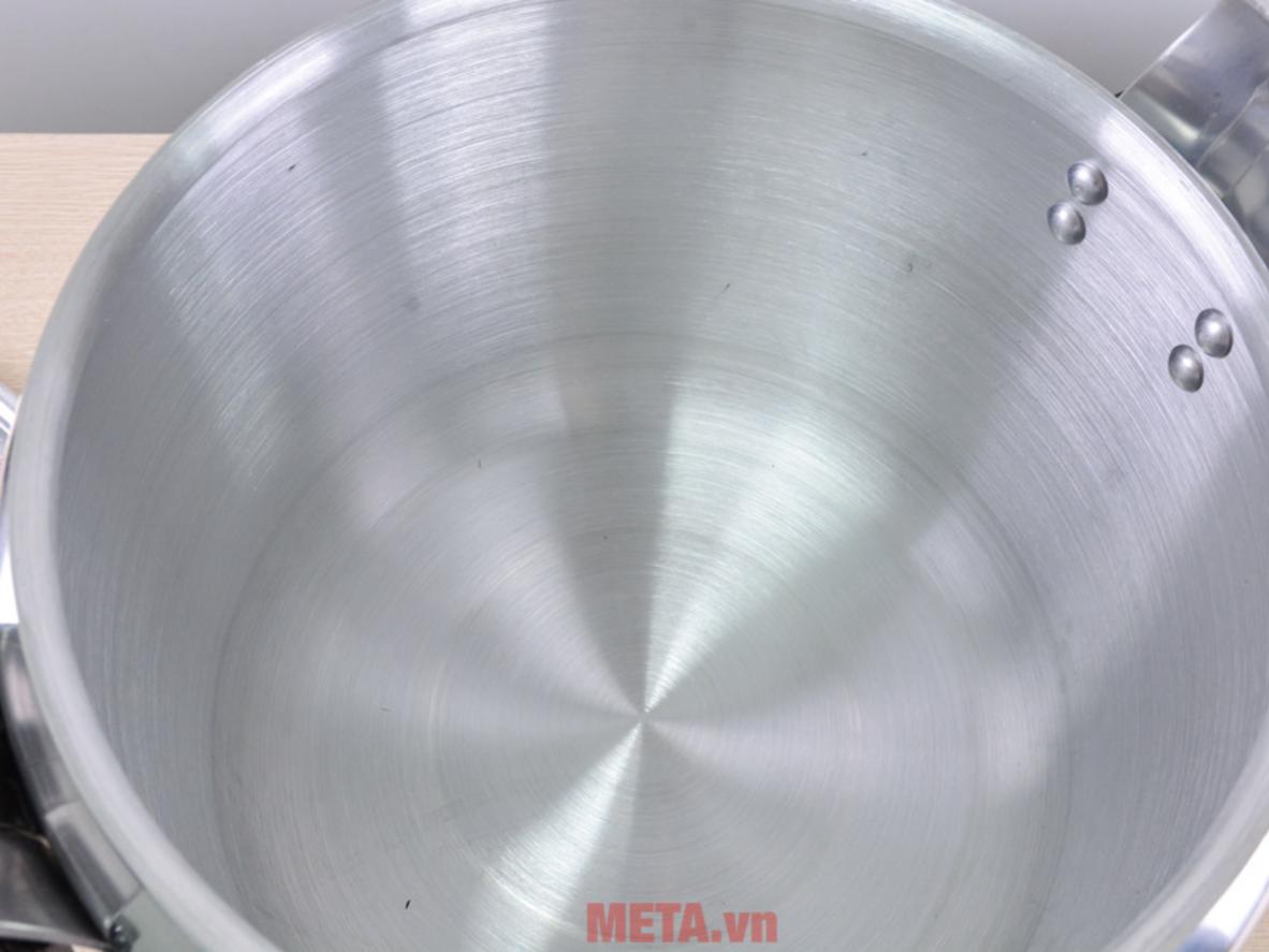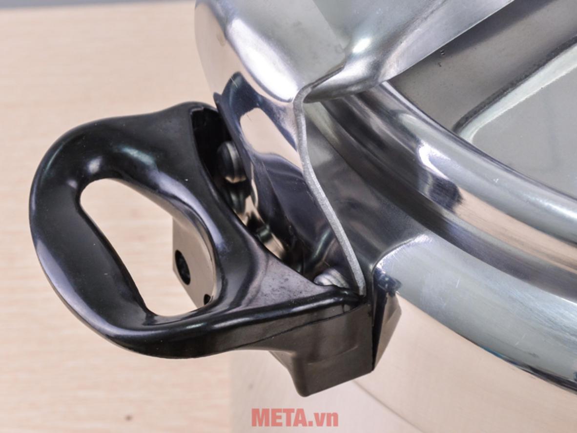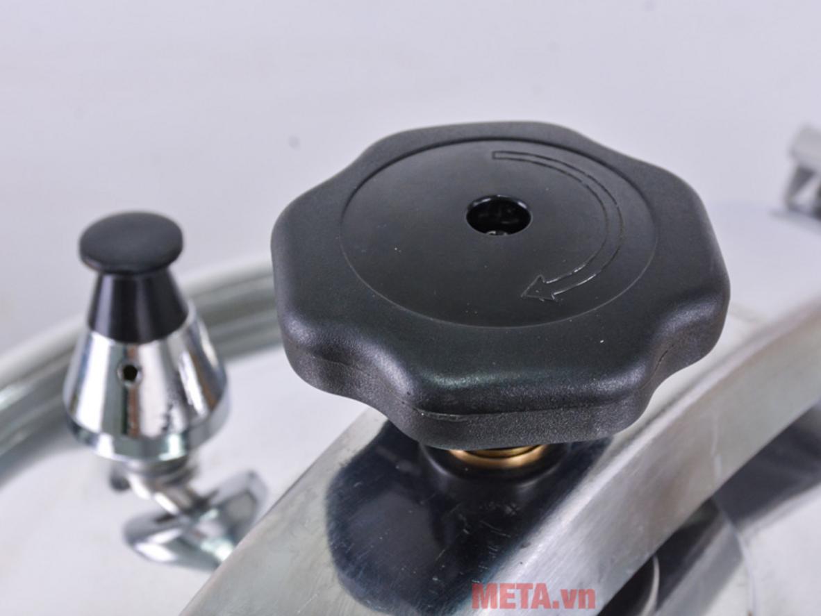 Van xả tự động và nắp khóa trượt giảm rủi ro mở nắp khi còn áp suất, bảo vệ bếp và nhân viên trong ca cao điểm. Cơ chế này chủ động xả hơi khi áp suất vượt mức và giữ nắp cố định để tránh bật nắp bất ngờ. Tay cầm cách nhiệt giúp thao tác an toàn, giảm nguy cơ bỏng tay cho nhân viên bếp.
