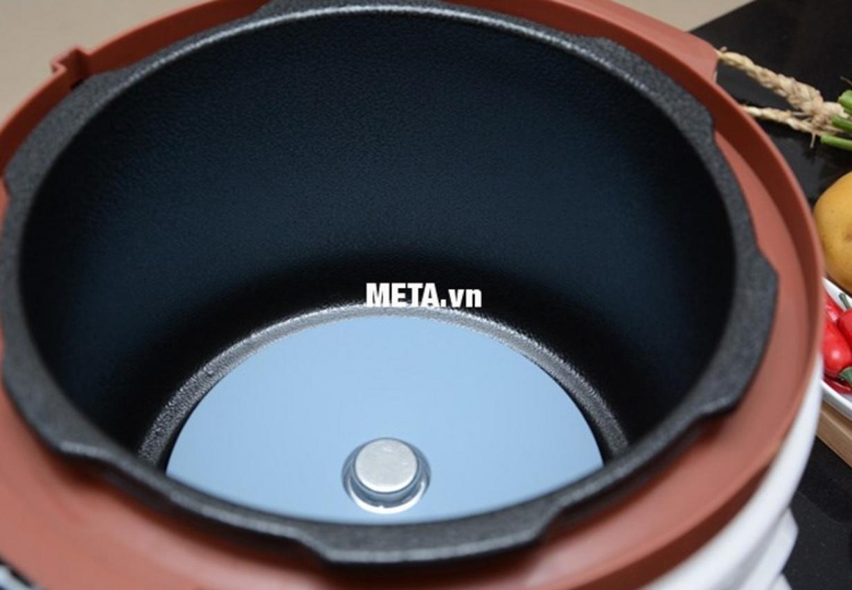 • Lòng nồi hợp kim nhôm/gang đúc liền, dày khoảng 2.0mm giúp truyền nhiệt đều.