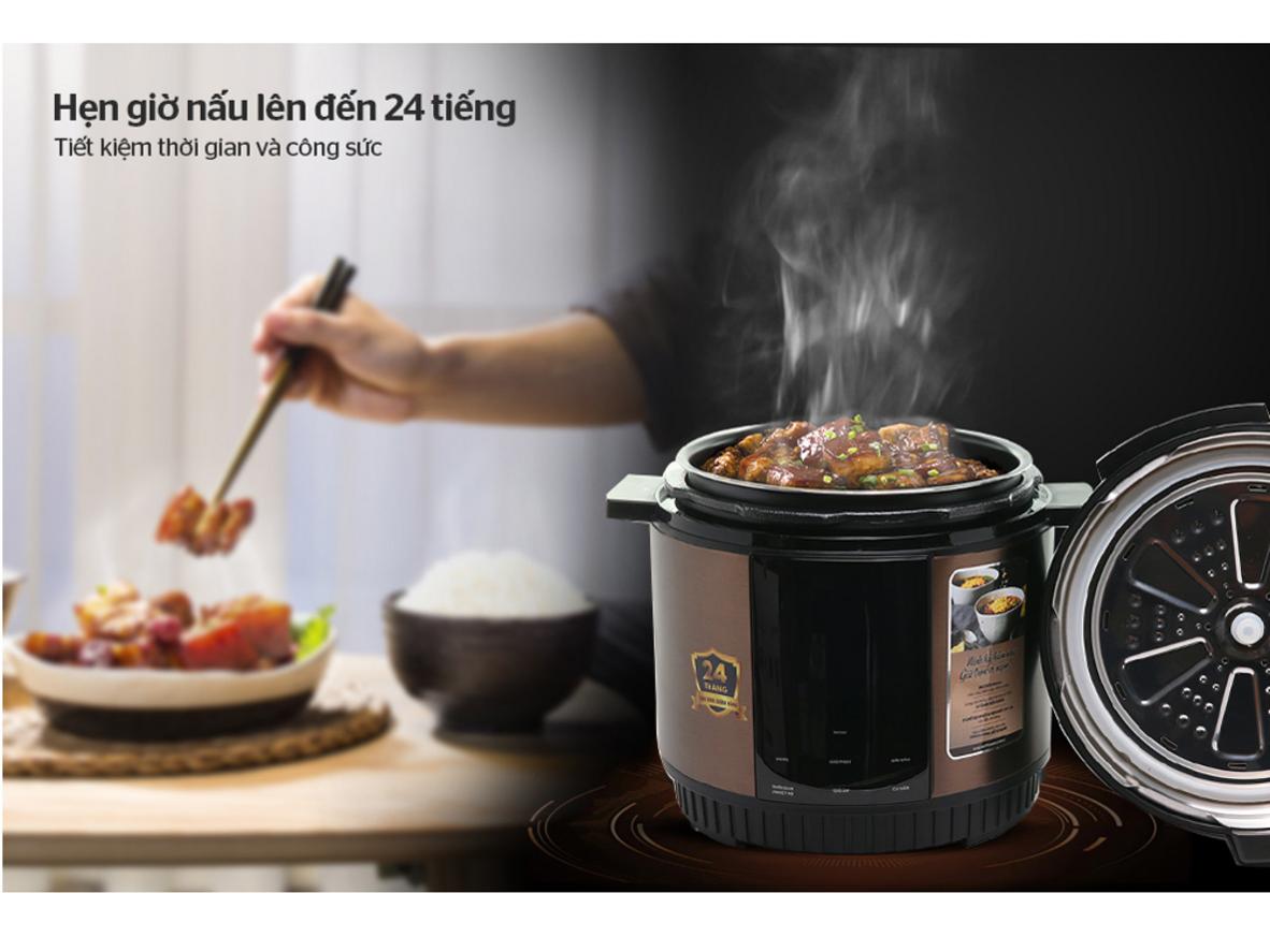• Lợi ích: Hẹn giờ nấu đến 24 giờ và giữ ấm 24 giờ để bạn chuẩn bị sẵn bữa ăn, tiết kiệm thời gian nấu — phù hợp với người đi làm và gia đình bận rộn.