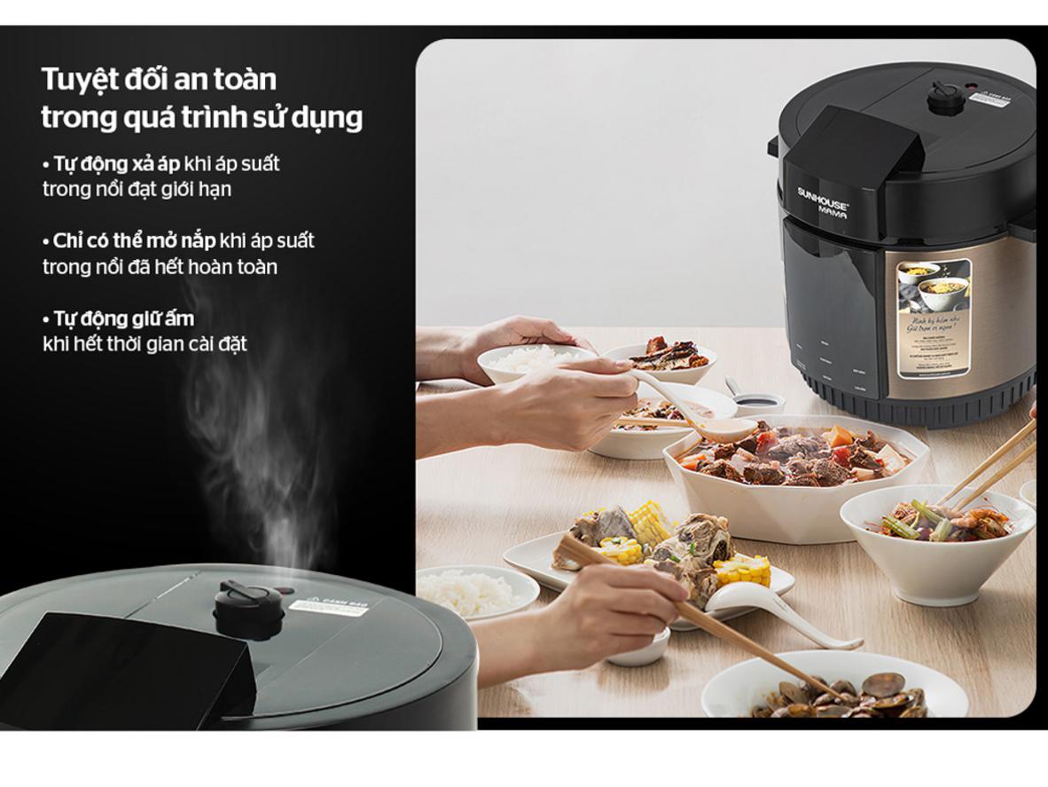 Nồi áp suất điện tử đa năng Sunhouse MAMA SHD1588B – Giải pháp nấu nhanh, an toàn cho gia đình bận rộn